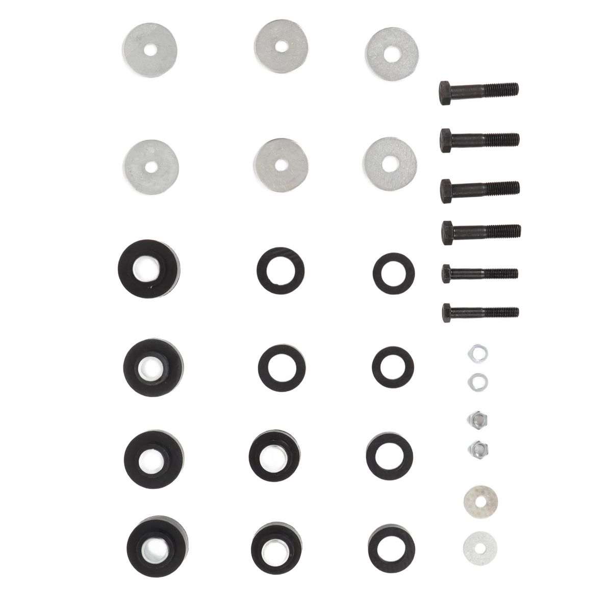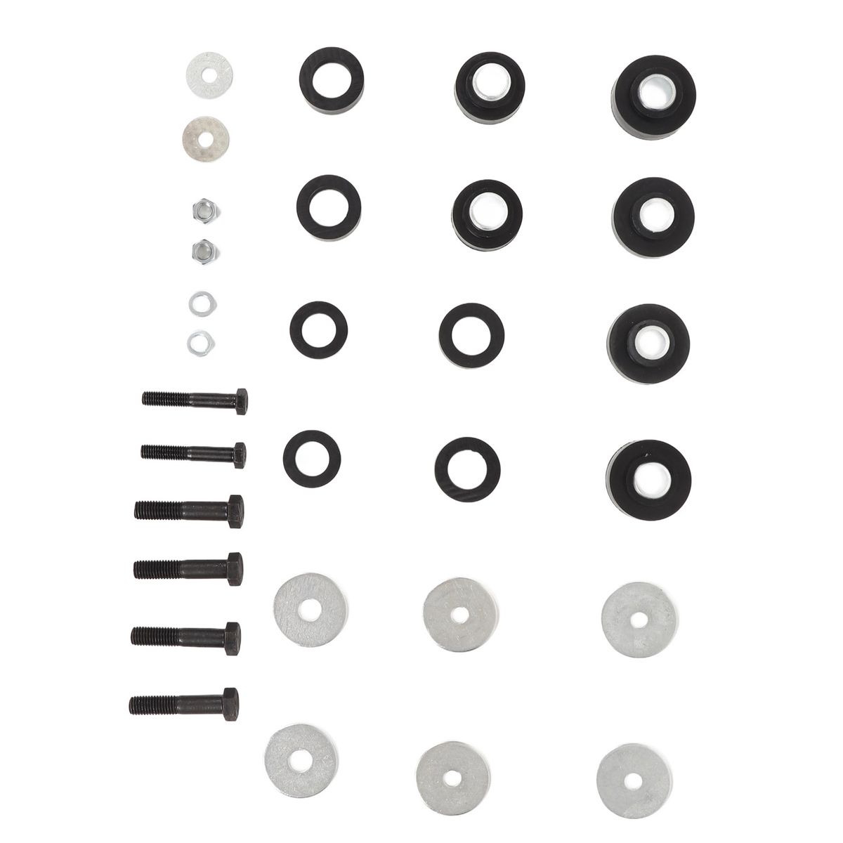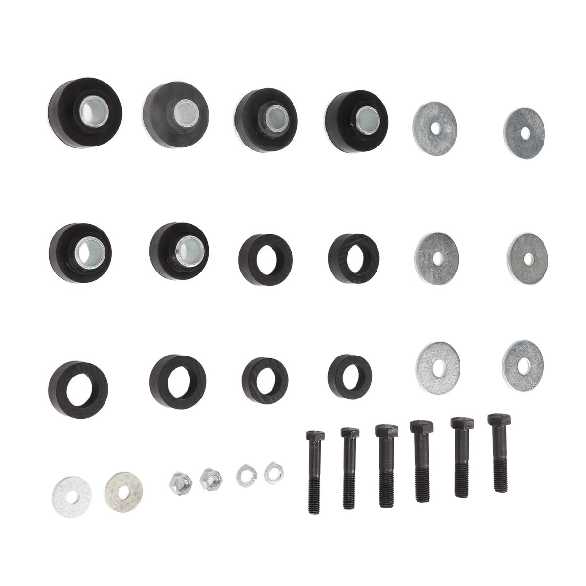 2. Complete Kit: The package includes rubber bushings and sleeves for the subframe body mounts and radiator support mounts, as well as hardware for the radiator support and the body.