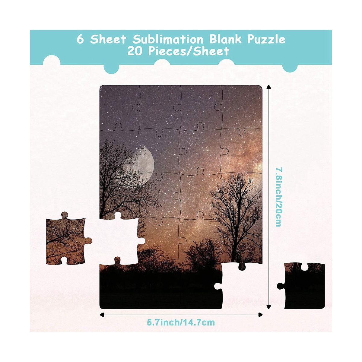 Package contents: you will receive 6 sets of transfer blank puzzles, 20 pieces per set, sufficient can meet your needs to make sublimation puzzles; Each puzzle is about 7.87 x 5.71 inches/ 200 x 145 mm