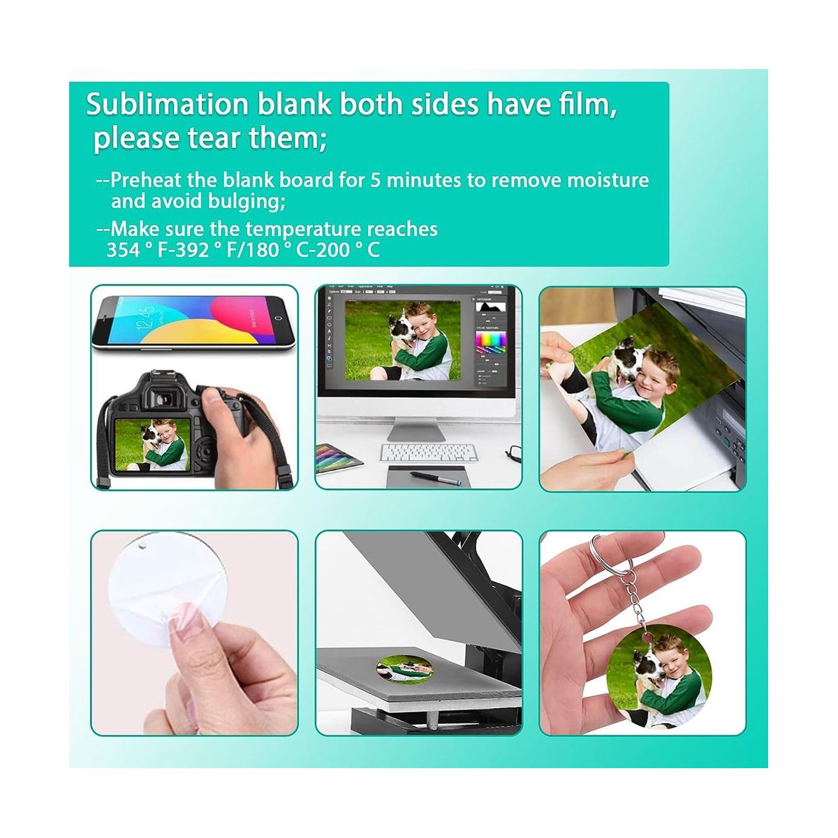 Tips: There is a film on both sides of the sublimation blank, please tear it off; preheat the blank for 5 minutes to remove moisture and avoid expansion; make sure the temperature is 35. 4°F-39 2°F/ 180°C-200°C