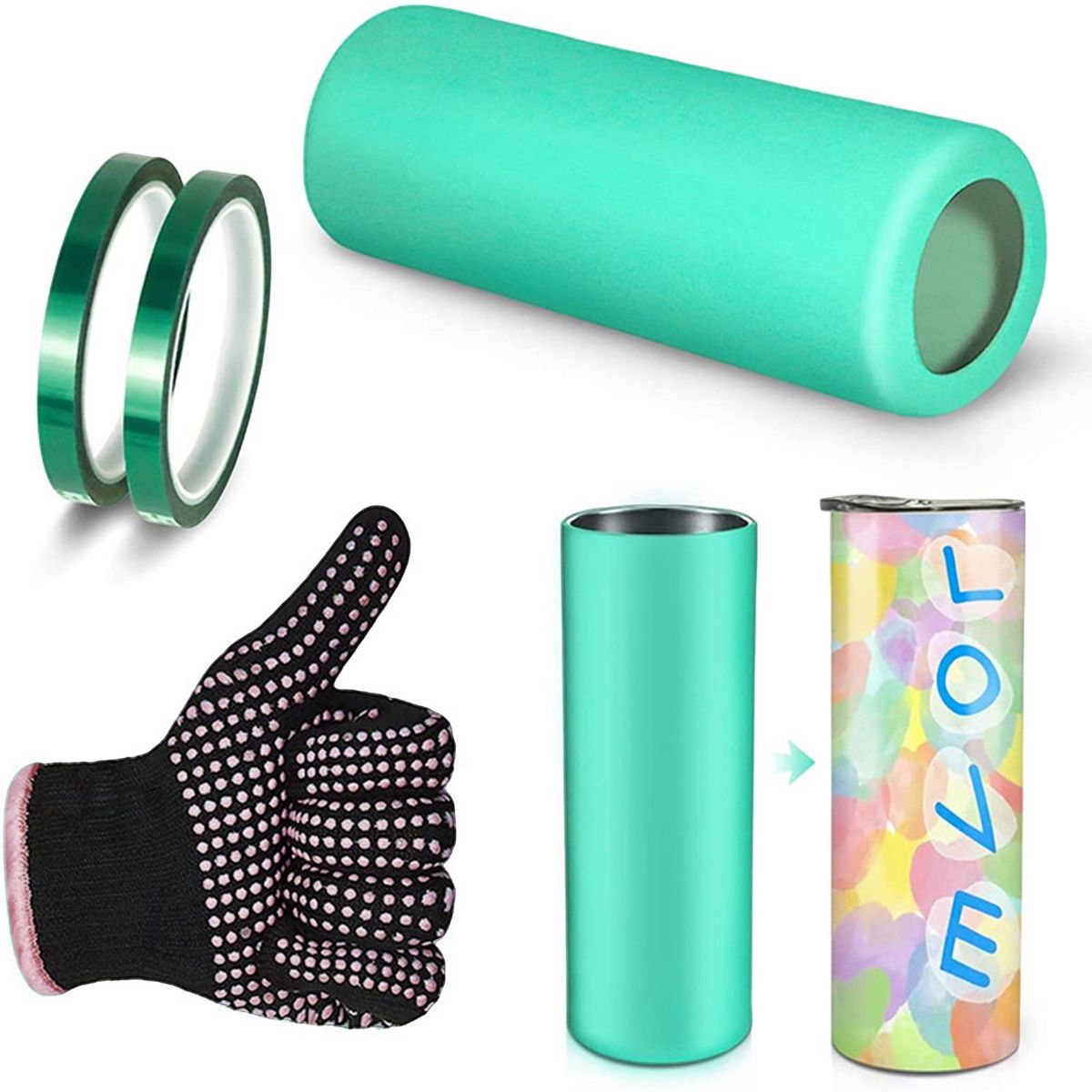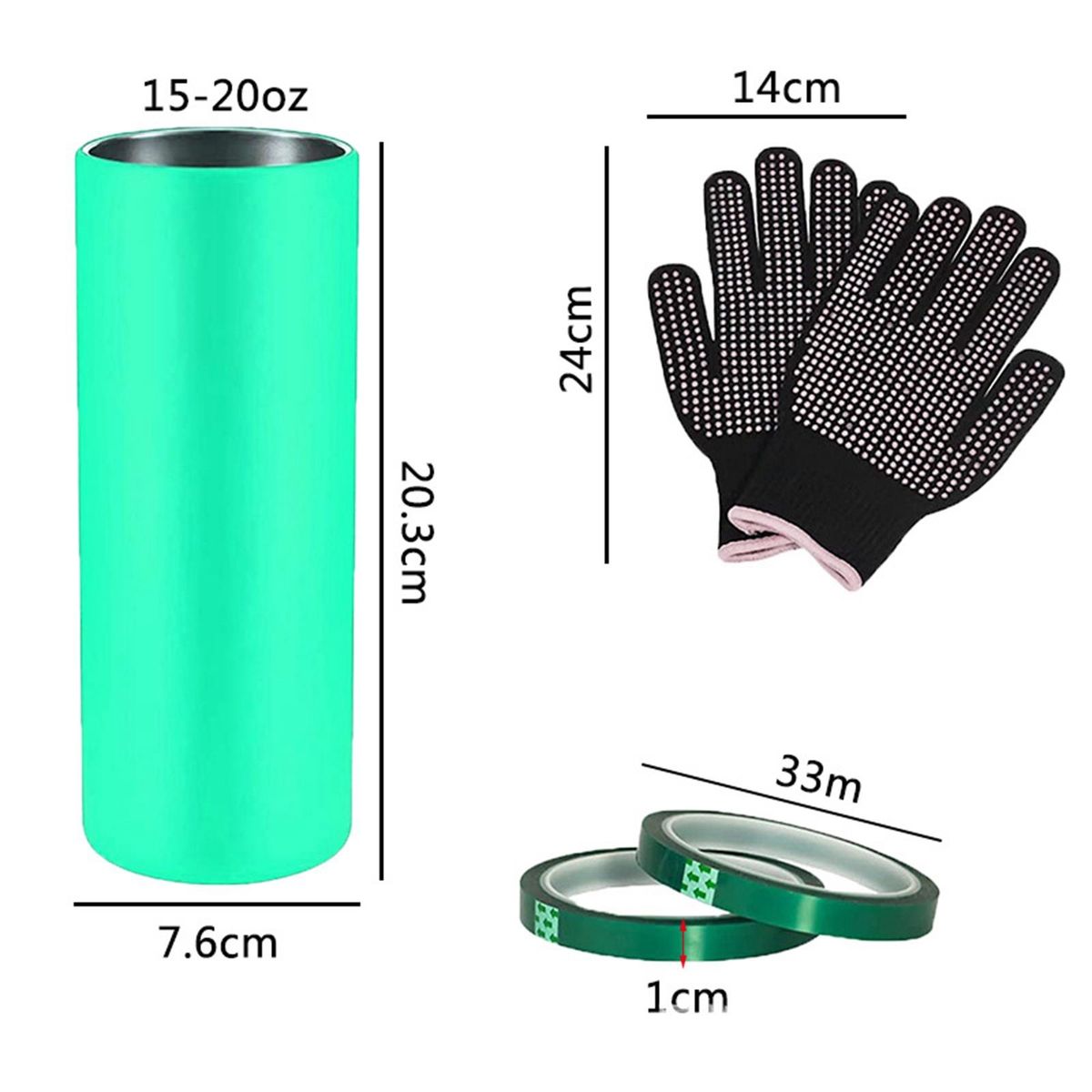 This package includes 1 piece silicone sleeve (for 20 oz tumbler), 2 pieces transfer tape, 1 pair resistant , help you make beautiful cups. Suitable for both beginners and professional designers, the best choice is for those who pursue perfect results.