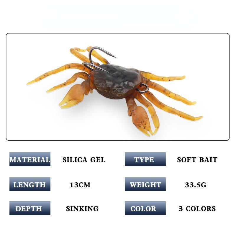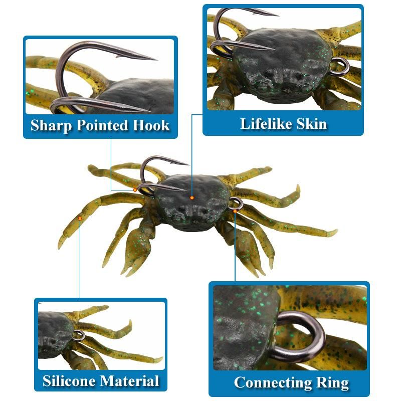 The incredible 3PCS submerged crab soft bait is specifically designed to mimic the graceful sliding movements of crabs underwater. These baits come in three bright colors and are perfect for use in any water body.