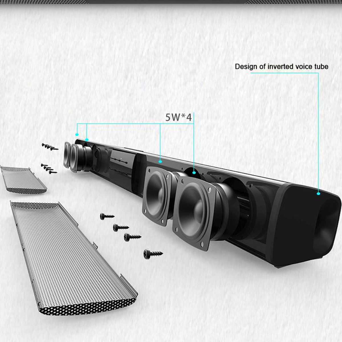 Surround Soundbar: with wireless 4.2 speaker, listening to your music with a tap of a finger, fit in smart TV, cellphone, tablet, laptop and so on4 Modes: TV Mode, FM Rodio Mode, IF Card Mode, USB Mode; U disk and TF card (up to 32G) player (not included), Two channels of 3.5mm external AUX audio input4 Full Range High-quality Speaker: Completes your home theatre system and bring the great bass, provides you a loud and clear surround audio experience in the bedroom and living roomEasy to Control and Operate: It features LED indicator light and sensitive button, much easier for users to operateFlexibly Placing: Fashion and portable design suits any home decoration, wireless input and TF-card input for savoring your stereo music good time everywhere