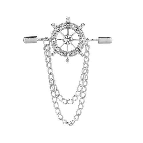 1 x Suit Badge Navy Style Chain Tassel Rudder Men's Brooch Pin Buckle Silver