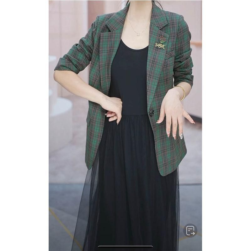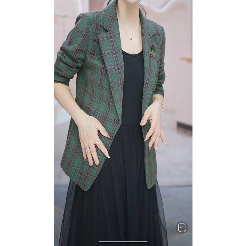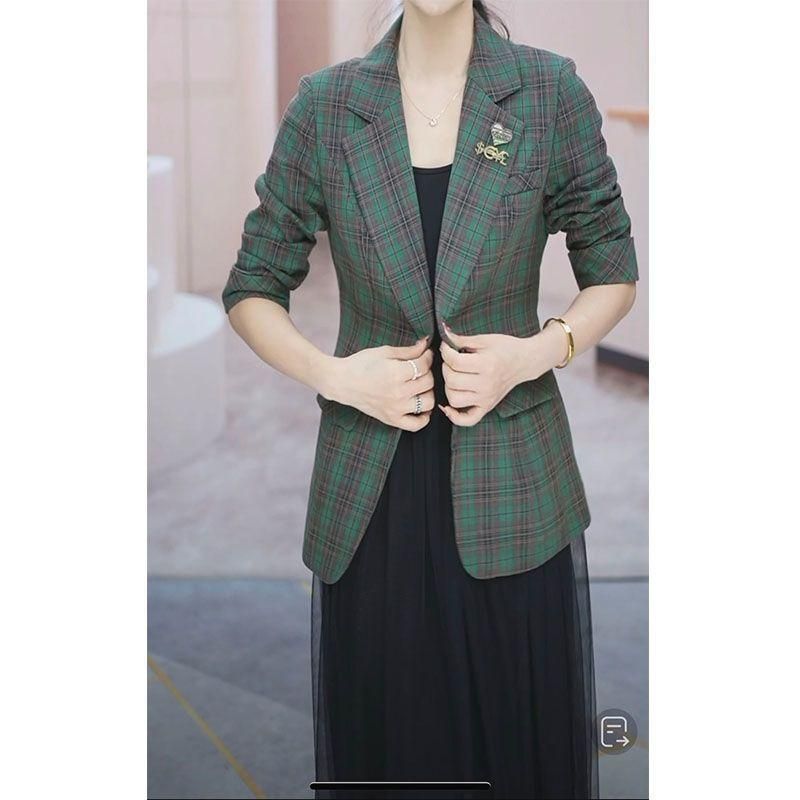 Buy Suit Jacket for Women 2023 Spring New Western Style plus Size Slim Fit Slimming Versatile Long Sleeves Plaid Suit Fashionable Top in Nigeria