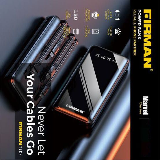 Firman range of power banks comes with assurance of the world renowned FIRMAN brand. You are assured that the device that is SON approved, with the FIRMAN LAB approved patent technology which has been tested and trusted over a long period of time across every continent