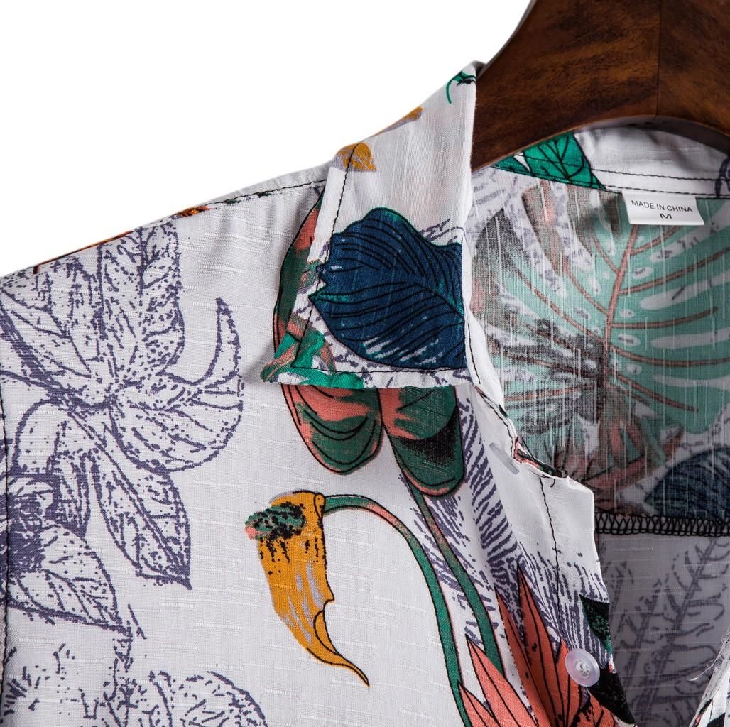 Summer Mens Mens Linen Ethnic Short Sleeve Casual Printing Hawaiian Shirt Blouse T-shirt Harajuku Chiffon Single Breasted Tee