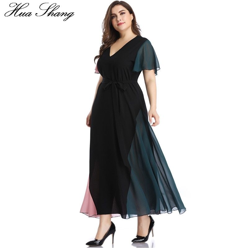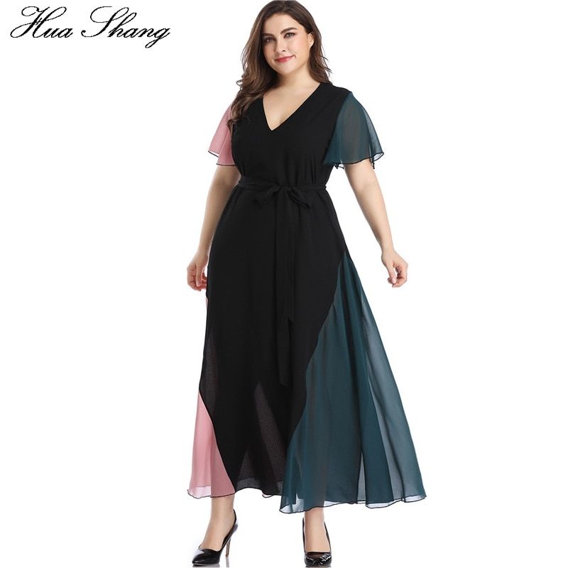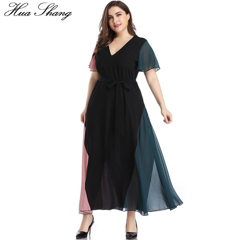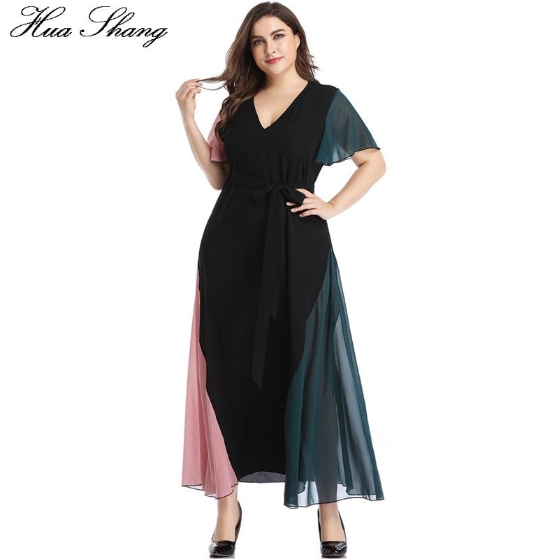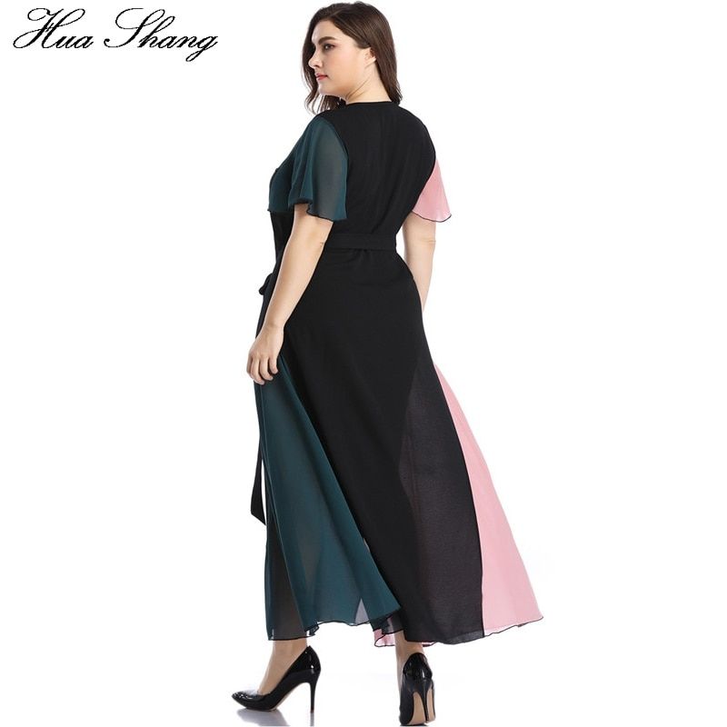 1X Summer Dress Beach 2021 Women V Neck Ruffles Short Sleeve Maxi Long Dress Plus Size Belted Multicolor Elegant Chiffon Dresses