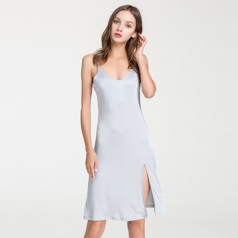 Summer New Silk Sling Nightdress Female Mid-Length Pajamas, Loose Mulberry Silk Bottoming Petticoat.