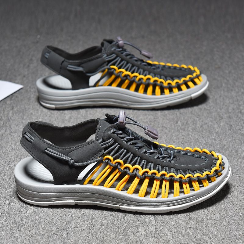 Buy Summer Sandals Men Shoes EUR Size 35-48 Fashion Handmade Weaving Couples Gladiator Sandals Soft Non-slip Casual Beach Flat Sandals Grey Yellow in Nigeria