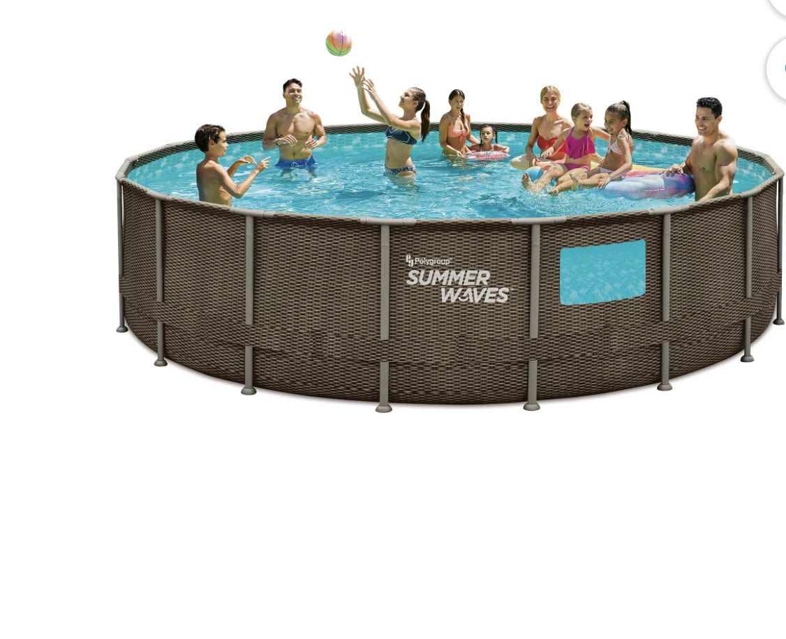 Look at summer from a unique perspective inside the Summer Waves 18 ft Round Dark Double Rattan Print Crystal Vue Elite Frame Above Ground Pool. The Dark Double Rattan exterior print and four see-through windows that give swimmers a unique ‘insider's view' of the outside will add both stylish flair to your backyard and creativity to your pool experience. Making setup easier than ever before, Summer Waves' new Smart Connect technology allows you to simply connect the poles together to keep the frame sturdy all summer long. Plus, the modern matte finish on all ultra-strong oval poles protects against scratches and corrosion, making the pool more durable year after year. The Summer Waves 18 ft Round Dark Double Rattan Print Crystal Vue Elite Frame Above Ground Pool comfortably accommodates eight to nine people, offering plenty of space to swim, play, and float inside with your family and friends.