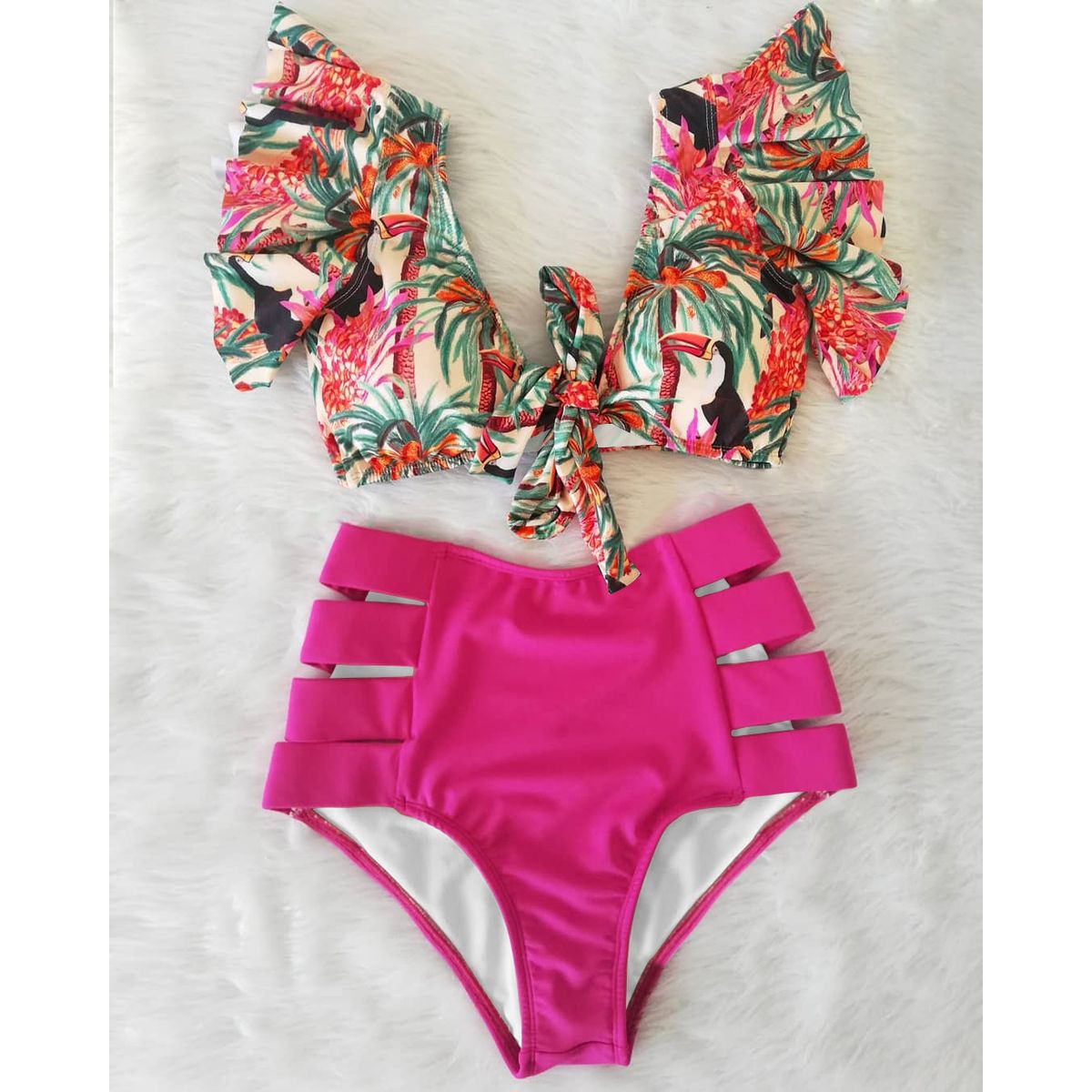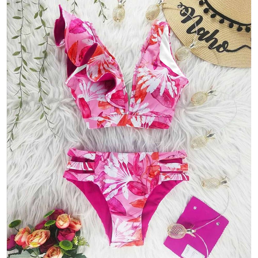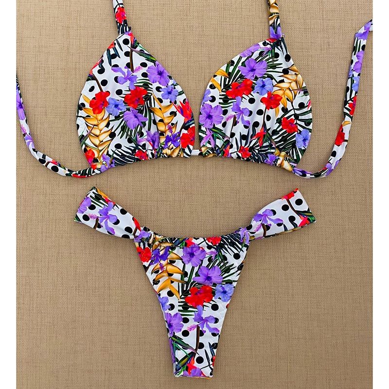1X Summer Women Triangle Three-Piece Suit y Bikini Set Bandage Push-Up Swimsuit Bathing Beachwear