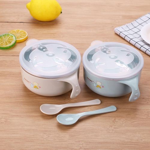Cartoon Kids Children Stainless Steel Injection Bowl Spoon Baby Infant Food Fruit Snack Feeding Tableware Set