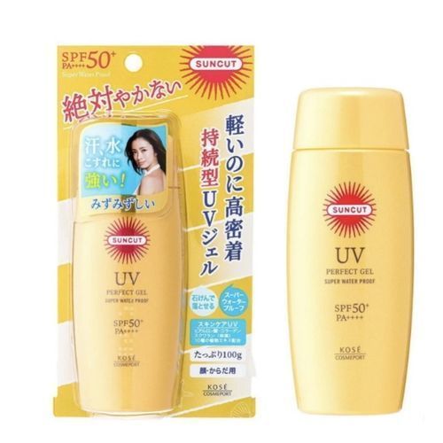 Kose Suncut Waterproof Perfect Uv Protect Gel Spf50+ Pa+++is waterproof and sweatproof! This multi-functional UV gel keepsthe skin moisturized throughout the day!The long-lasting water-resistant and sweat-proof formula is perfect for outdooractivities. With SPF50+ and PA++++, this sunscreen effectivelyprotects the skin from damaging UVA and UVB rays. Thisextreme* gel withstands sweat, water and excess oil,and a maximum UV protection factor offers extended protectionfrom UVA and UVBrays. Prevents wrinkles and freckles, which are caused byexposure to the sun.Since it is waterproof, it will continue to protect you fromUV rays even if you sweat.Protects your skin from damage caused by exposure to UV raysduring outdoor and leisure activities.The moisturizing and gentle water base almost melts intoyour skin without leaving white traces or stickiness.Prevents dryness, leaving your skin looking smooth andfresh.Includes hyaluronic acid, GL (moisturizing) and 10 typesof plantextracts.*GL refers to glycerin.Can also applied to the skin as a make up base.Improves the hold of your foundation and keeps your make upin place.And it can easilv be removed with soap.