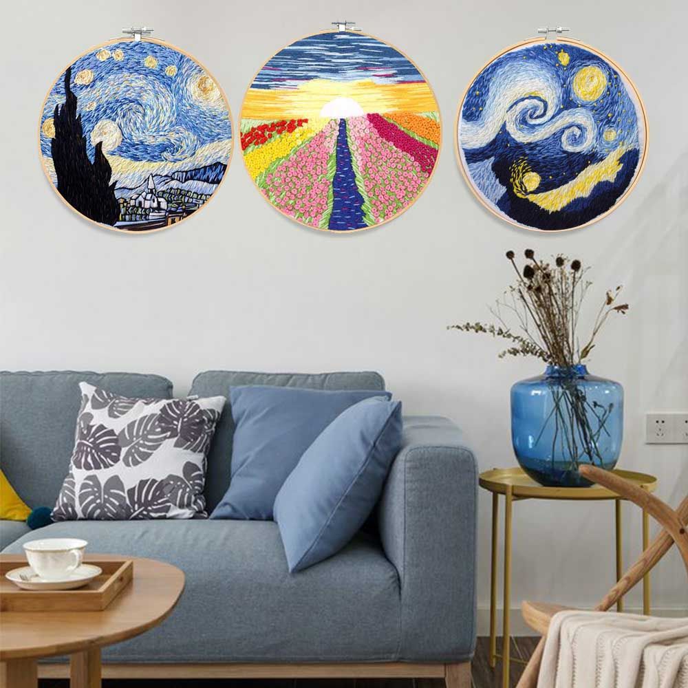 1X Sunflower Flower Embroidery Cross Stitch Kit For Beginners Embroidery Hoop Punch Thread DIY Sewing Accessories