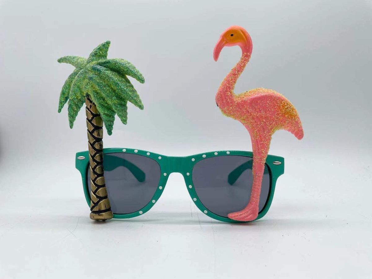 Summer glasses , coconut tree + Flamingo holiday party glasses , dance photography props , funny glasses