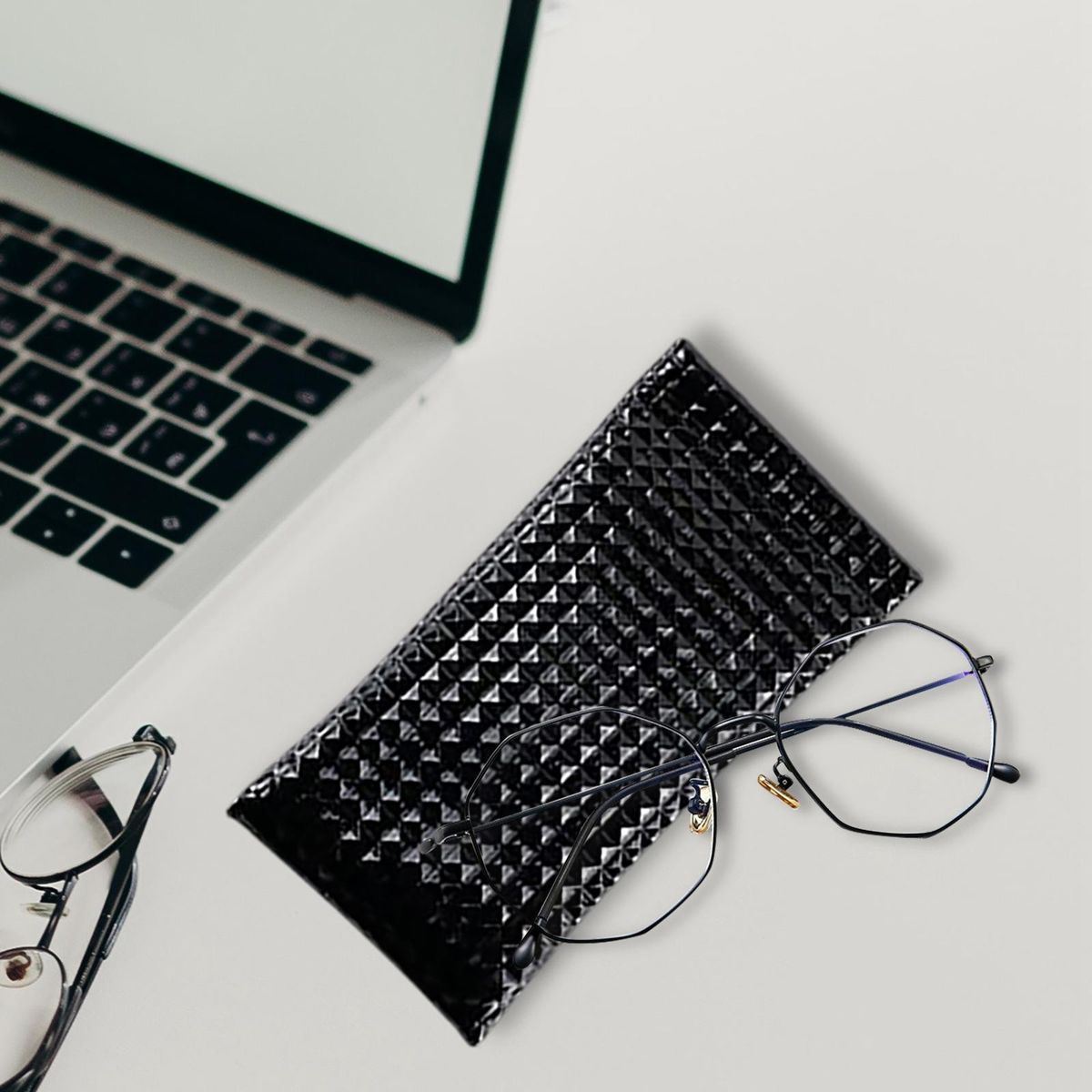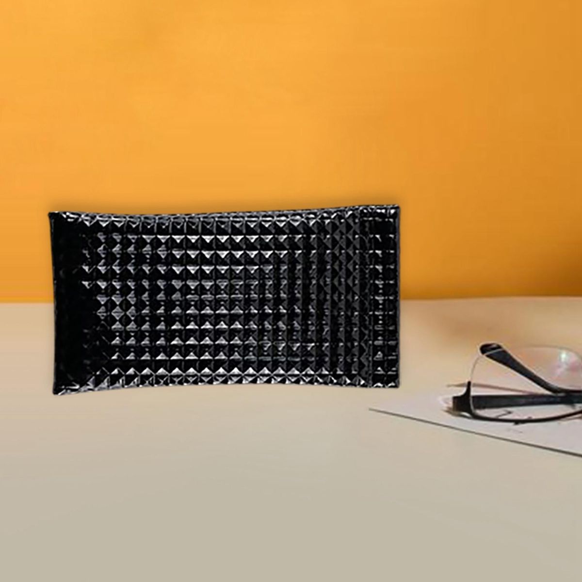 PVC: Sunglasses storage bag, made of PVC leather, portable and waterproof.3D Design: 3D diamond shape, effective anti-pressure, better protection of glasses.Elastic: Elastic pocket design, high quality elasticity, no deformation.High quality: Regular and fine sewing, smooth and not off the line.Fit for: Suitable for regular glasses within 17x8cm.