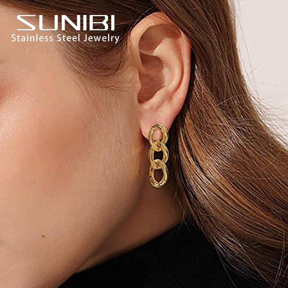 Buy SUNIBI Fashion Stainless Steel Stud Earrings for Women Cuban Link Chain Gold Plated Dangle Earrings Rock Punk Jewelry Wholesale in Nigeria
