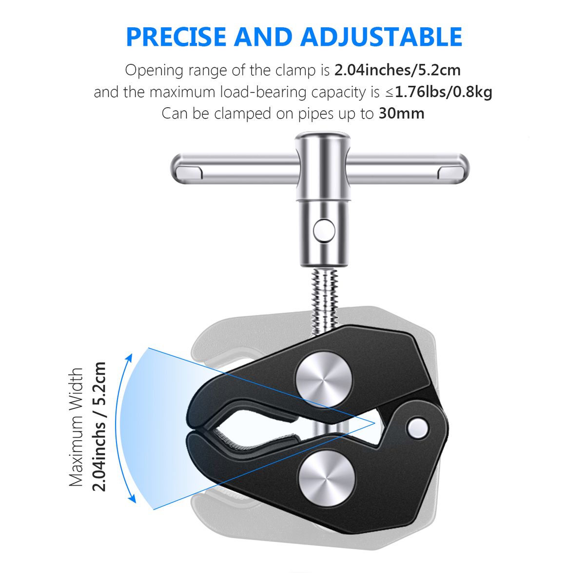 3. Super Clamp is work with 0.59-2.1inches/15-52mm diameter pole.