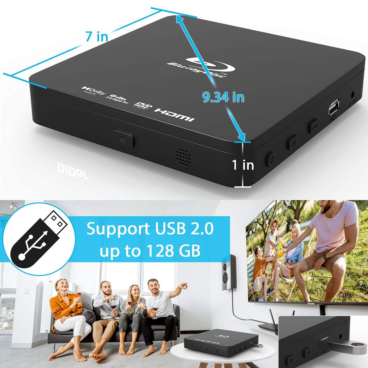 【Multi-Playback】With quick connections, full-HD upscaling, USB direct playback, and multi-playback, you can watch your favorite films on disc, watch videos and listen to music from USB storage devices.