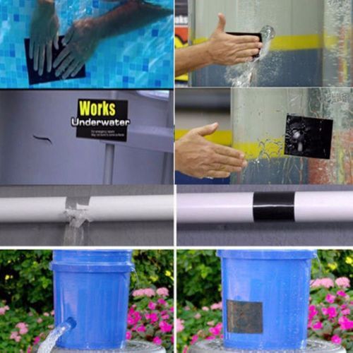 FLEX TAPE ® is a super strong, rubberized, waterproof tape that can patch, bond, seal and repair virtually anything! It is specially formulated with a thick, flexible, rubberized backing that conforms to any shape or object. This durable adhesive tape instantly seals out water, air and moisture to create a super strong, flexible, watertight barrier. Unlike other tapes available, Flex Tape's bond will increase with time and pressure. It is environment-resistant, UV-resistant, VOC-free, and has a wide temperature range, so it can be used in extreme weather conditions.