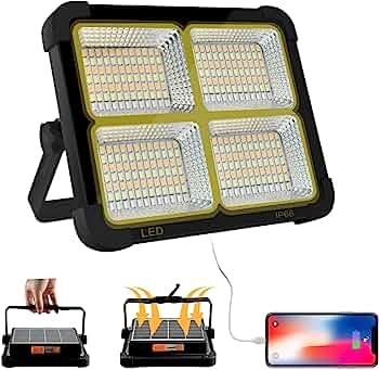 - 【High Lumens and Long Battery Life Solar Rechargeable】Cosyeasy Work light with 336 led chips could offer powerful brightness at 10,000 lumen output ,come with 16500mAh battery rechargeable and solar backplane.