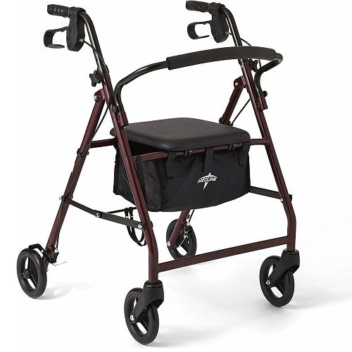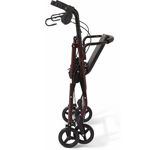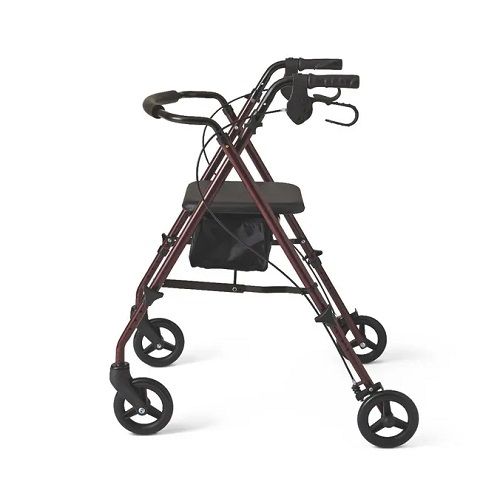 Medline Superlight rollator is the lightest model currently on the market weighing in at a only 11 lbs. It allows you to safely walk along or sit on the padded seat if you become tired. Unlike a regular walker, a rollator doesn't involve the lift that a normal medical walker requires, making walking a smoother process. A rollator, however, requires the user to be stable enough to not let it get away from the since it has rolling wheels. Ideal for on-the-go individuals, the lightweight frame in an attractive smoky red paired with folding capabilities make the Freedom perfect for getting in and out of the car and stowing away when not in use. With height-adjustable arms and legs, users 4'11" to 6'4" can personalize the fit. A roomy 12" x 12" seat and 6" wheels provide added comfort and easy mobility on a variety of surfaces.A large storage bag beneath the seat includes a water-resistant pouch and shoulder strap to take on inclement weather. This Rollator accommodates users up to 350 lbs.
