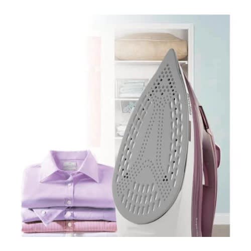 The soleplate features Tri Zone technology tackling creases in 3 different areas. The 190g steam shot and precision tip tackle tough creases in hard to reach places along with the 55g of constant steam helping to relax fibers and the pressing plate with a rolled edge removes excess water to help to prevent re-creasing.