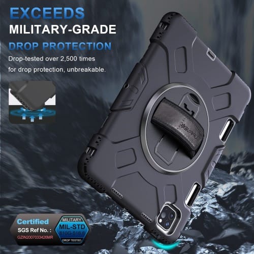 Tablet Grip Case - Built in 360 degree Rotating Handle Grip on back of case allows for easy holding and handling of your tablet any way you need.