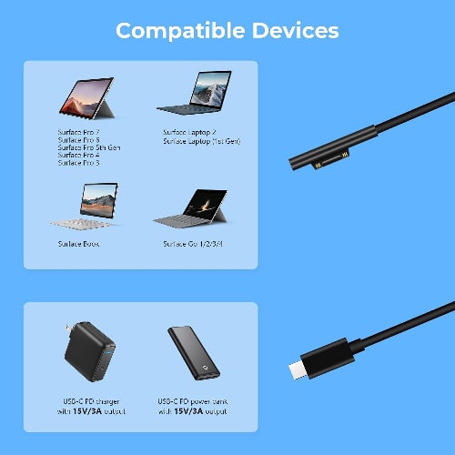 Buy Surface Connect To Usb-c Charging Cable 15v/3a - Compatible With Microsoft Surface Pro 7/6 in Nigeria