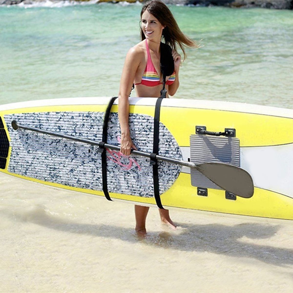 The straps can be adjusted to fit different heights of paddle with different sizes of boards.
