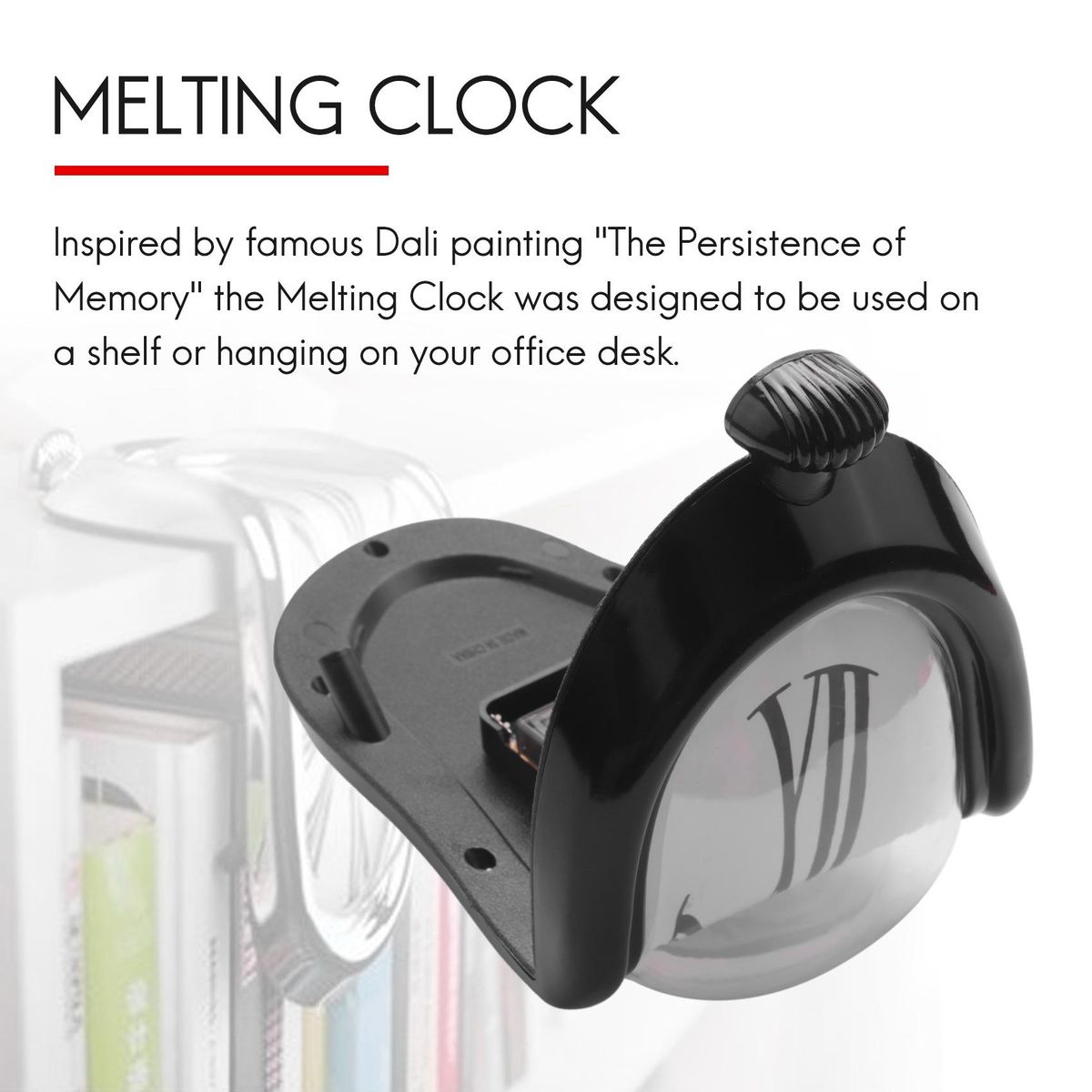 2.Inspired by famous Dali painting "The Persistence of Memory" the Melting Clock was designed to be used on a shelf or hanging on your office desk.