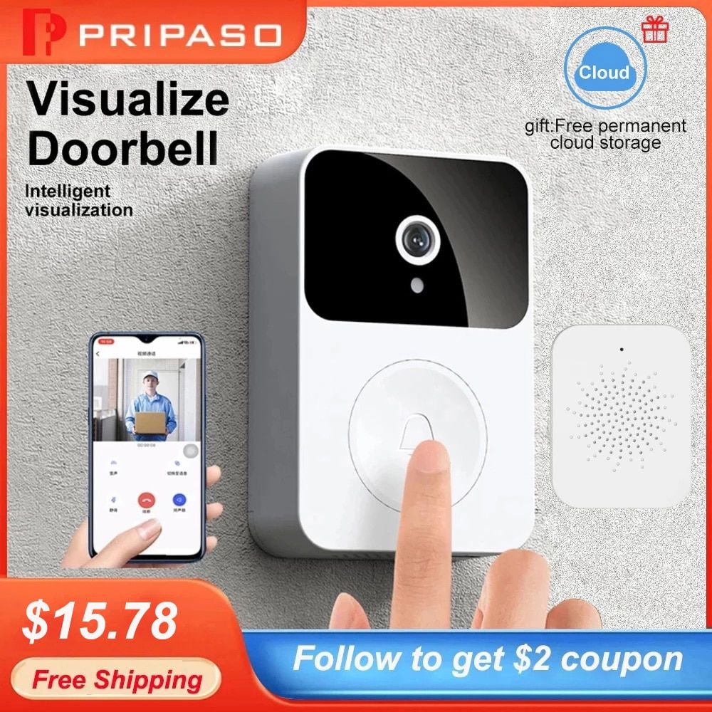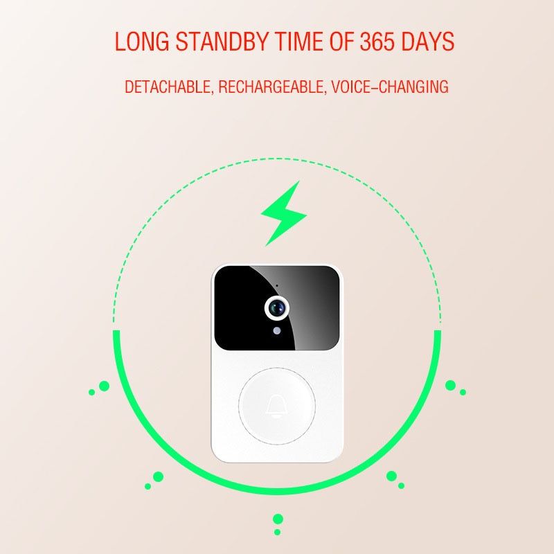 HD Wireless Door Bell Rechargeable Home Surveillance Visual Door Camera Video Wifi Intercom Remote Control Night Vision DoorbellProduct Features:1、Built-in battery 850 N( Long Time Standby up to 365 days)2、Built-in melodies, 38 Melodies for your options adjustable volume3、Voice Change Function(man voice at home children and women get safer when alone )4、High Definition night vision infrared night vision function. auto switch day/night.5、Live Video Call talk(Visitors at once when visitor presses doorbell, notification will sent to your cellphone, you can answer it and enter video call interface.supports maximum share to 10 family members.)Product Parameter:Color:WhiteMaterial: ABS material, PCBA, polymer battery, speaker, camera, hardwareBattery capacity: 800mAPower input: 5V=2ACharging time: 1.5 hoursStandby time: 2 years or moreRecord keeping: Three days of permanent rolling storage, 3 days unlimitedIntercom type: Colour videoCamera resolution 480*640Doorbell size L*W*H: 80*53*22Dingtone size L*W*H: 55*42*25, (including USB: 12mm height)Net weight of doorphone: 65.7gNet weight of the ding-dong: 23.3g Gross weight : 134.8gPackage size: 100*35*145 mmPackage include:*Doorbell unit ?x1 pcs*Indoor ding-dong unit ?x1 pcs*Charging cable x1 pcs*Auxiliary sticker x1 pcs*Small screws x3 pcs*Manual instruction x1 pcsNote:Below is our update version description:Package?Included:1?x?WIFI?Doorbell2?x?18650 Battery4?x?Screws4?x?Installing?Accessories1?x?Wrench1?x?Sticker1?x?User?ManualWarm Tips:*This wireless doorbell camera can only connect to a 2.4GHz network, not a 5GHz network.*Keep the doorbell in the range of the router. Thick or insulated doors will reduce the wifi signal strength even if your router is nearby.*When entering the product password, please check whether the password is correct, otherwise the device cannot connect to wifi and cannot be used normally.*Please full charge the batteries for 5 hours before . Low power may influence the function of the video doorbell.*There is an insulating sheet on the battery cover of the doorbell. Please remove it before using it. Otherwise, there will be no power to wake up the camera.*The video doorbell can only be connected to the APP of one electronic device. If you want to use the doorbell on multiple devices at the same time, you need to both have separate accounts then just add friends to achieve it.*If the message is not pushed, please check whether the notification permission of the mobile phone and the software are turned on.Specification:Resolution:?1920*1080Field?of?Angle?View:?135°IR?LED:?6*850mmWi-Fi:?IEEE?802?11?b/g/nAudio:?Two-way?talk?with?noise?cancellationRecording:?Device?SD?card?recording(20?seconds)Storage:?8G/16G/32G/64GBattery:?AC?Input/2?x?18650?specification?batteries(?work?regularly?for?9-10?months.)?Monitoring:?Device?Button,?Motion?Detection,?Remote?Live?ViewNotification?Function:?Push?Notifications?within?1?secondDevice?Wakeup:?Within?600?msPower?Consumption:?Power?Consumption?Standby?200μA,?Working?170mAThe?product?contains?User?Manual.?Please?READ?THE?USER?MANUAL?when?installing.ONLY?Support?2.4Ghz?Network,DO?NOT?Support?5Ghz.Features:Support?WiFiMovement?detecting.?Intrusion?alarm?systupport?APP?Function,?it?can?be?applied?for?Android and IOS syst.?Support?real-time?video?and?audio?chat?with?visitorSupport?picture?snapping?and?video?recording?functionSupport?night?vision?and?built-in?IR CUT?technology,?available?day?and?nightProduct Details:Fashion?design,100%?Brand?New,?high?quality!This?wifi?doorbell?can?connect?home?WiFi?and?achieve?a?two-way?intercom?between?the?doorbell?and?cell?phone.?When?a?visitor?presses?the?doorbell?sound?is?activated?and?the?camera?will?start?sending?real-time?images?and?call?to?the?cell?phone.?The?user?will?receive?the?call?to?check?who?the?visitor?is,?and?then?intercoms?with?the?visitor.