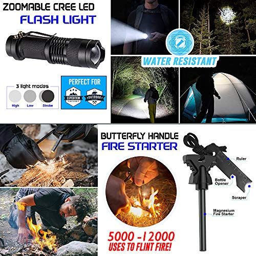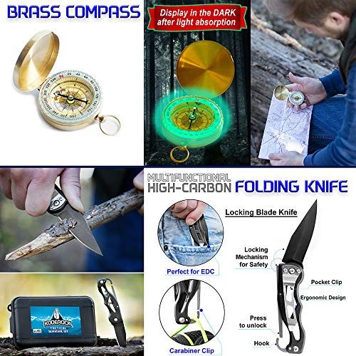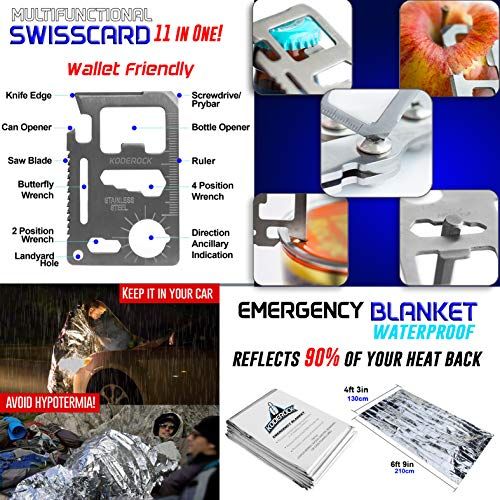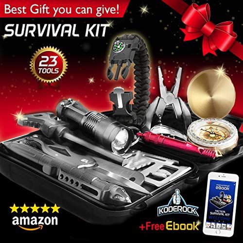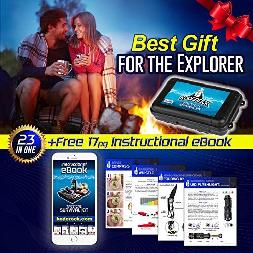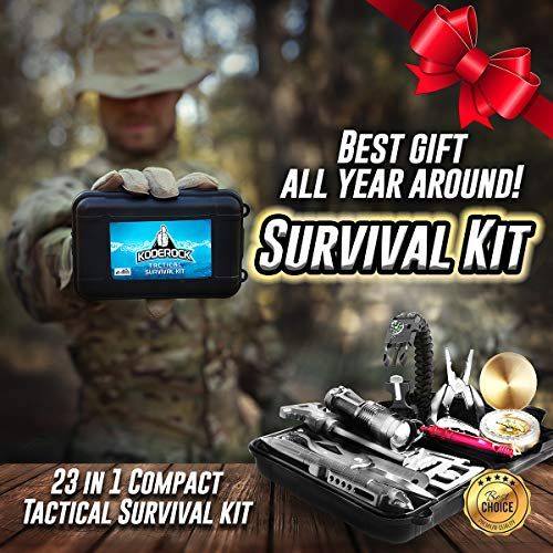 Details: This Veteran designed survival kit is STUFFED with as muh as we ould fit in a ompat water resistant box for your onveniene. It an be plaed in the ar, boat, bakpak, bug out bag, glove box, anywhere. And... _ Koderok is ommitted to improving life for others. A portion of every purhase is donated to orphan kids at the GOOD SAMARITAN CHILDREN HOMEEvery item is inspeted to provide you with onfidene when purhasing. And to bak it, we at TAC Yeti also give % manufaturer guarantee for any manufaturer problems for days.With your purhase:_FREE instrutional eBook - Follow the ard insert to find the FREE 12 page instrutional eBook that shows eah tool and the how-to of them_ day % manufaturer guarantee_23 awesome tools_And you help feed and lothe orphans with every purhaseTools inside:-Spring-loaded Plier-Paraord Braelet-Low-power CREE LED Flashlight-Supa-slim Poket k-Br Comp-Emergeny Thermal Blanket-Tatial Defense Pen-Butterfly Handle Ferro-Mag Fire Starter-11-Funtion Swiss Card-Fishing Hooks, Line, and Sinker-Emergeny Whistle-Gauze and Adhesive Bandages-Water Resistant Durable Carrying Case