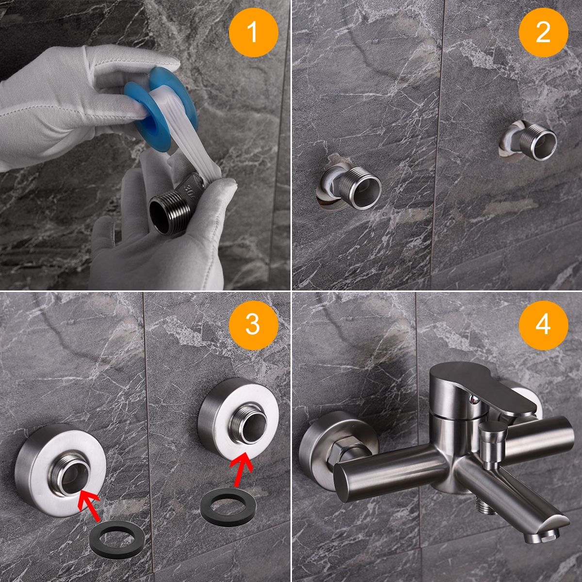 HARDWARE PACK: Inlcuding bath mixer, escutcheons and rubber washers. Hole distance should be 150 MM, +- 20 MM.