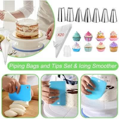 Descriptions:Heads made from high quality food grade stainless steel, dishwasher safe.Great for beginners.Perfect for decorating your cakes,cookies,cupcakes and more.Easily make you a pastry decoration master.Main Features:Material: made from stainless steel. Durable and premium materials so they last for as long as possible.Reusable and non stick. Perfect tools to decorate all your cakes, cupcakes, cookies, pastry and more.Compact, lightweight and easy to use: all accessories included in this set are easy to use and easy to clean, perfect tools to create scrollwork, lettering, flowers, borders, and other frosted accents on cakes, biscuit, cupcakes, cookies, chocolate, pie and more.This tool set is suitable for beginners, even experienced decorators will think it is very nice.Perfect as a gift. Spend more time enjoying the happy baking moment and less time on the cleaning. The cake decorating bags are made from healthy plastic which is BPA free, a good choice for daily decorating.