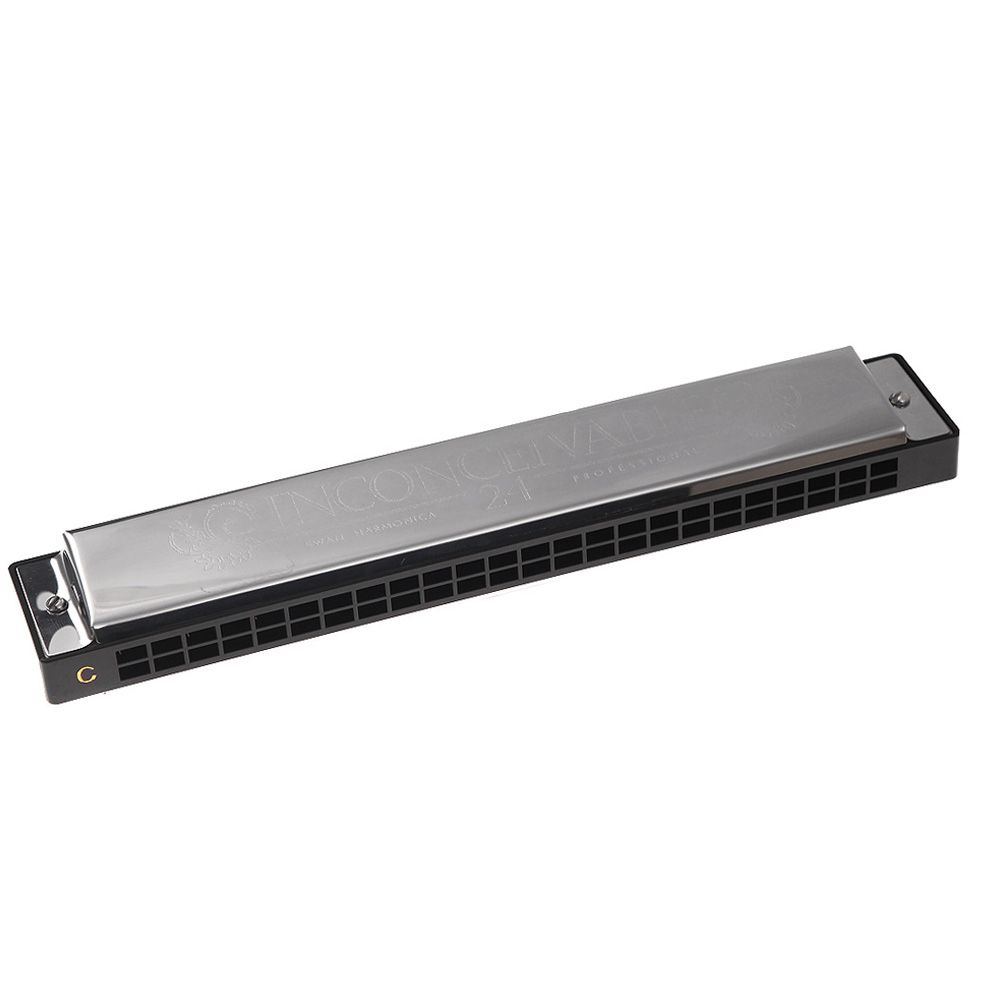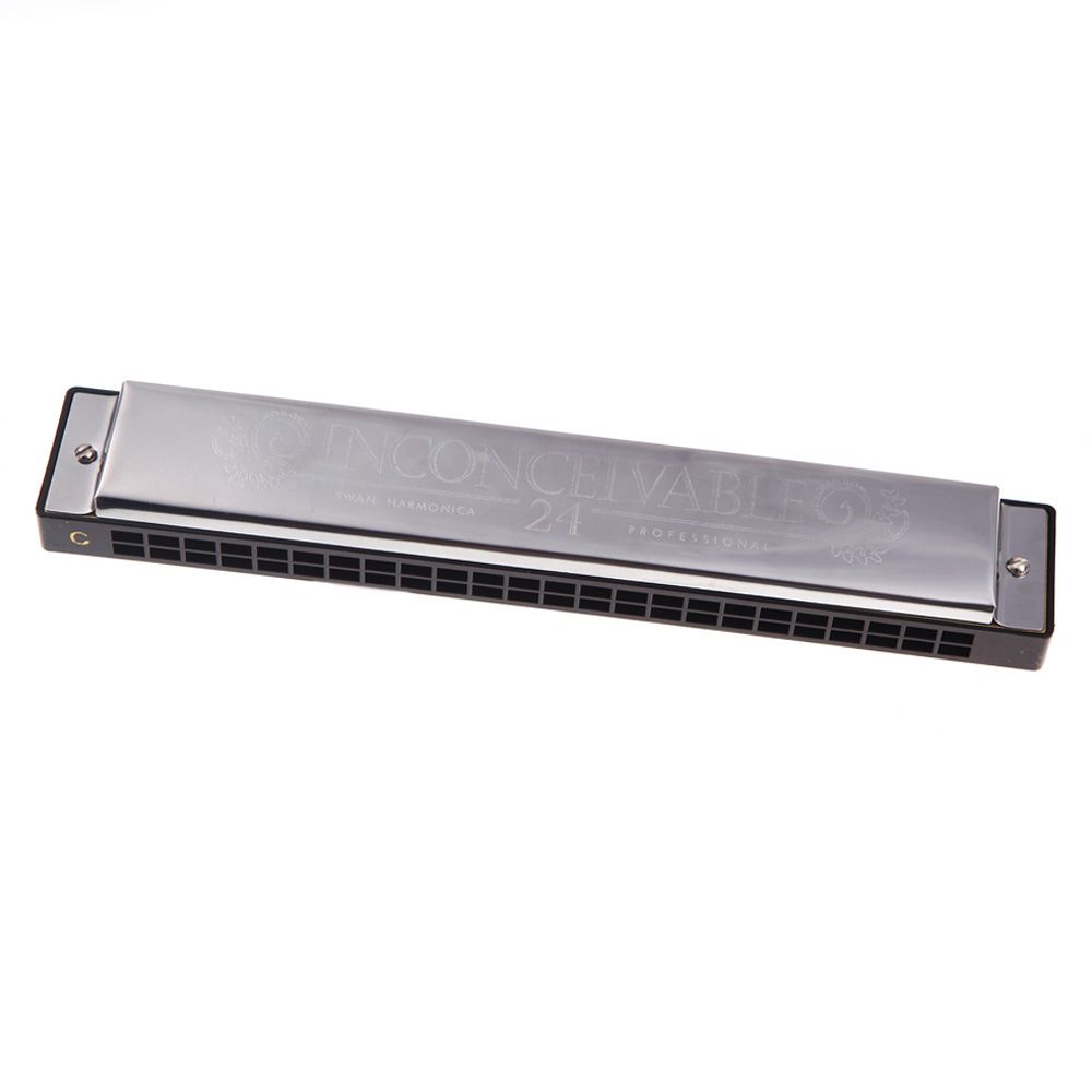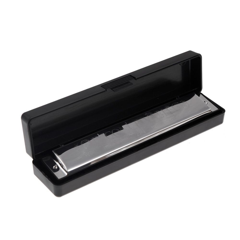 Tremolo harmonica with 24 holes and 48 reeds.