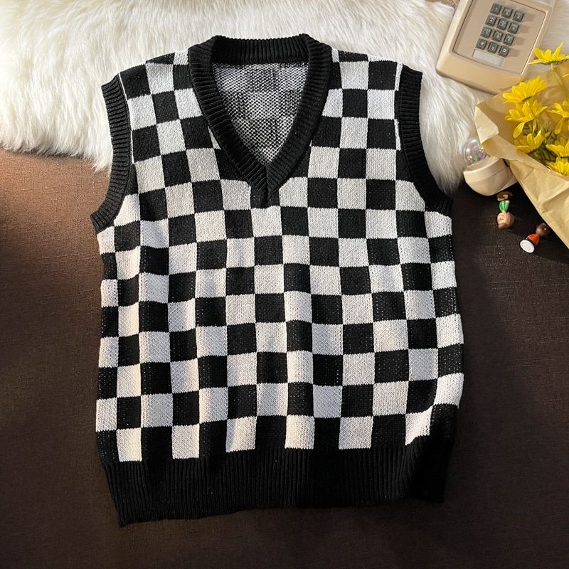 1X Sweater Vest Men Round Neck Sleeveless Sweaters Loose Oversize Preppy College New Males All-match Knitwear Clothing Spring Daily
