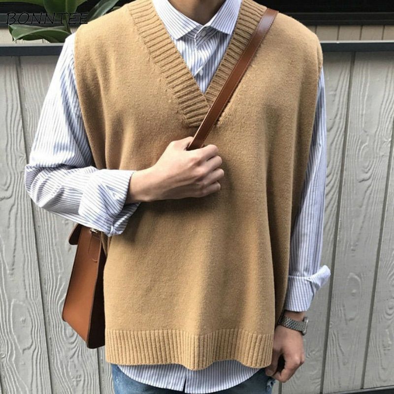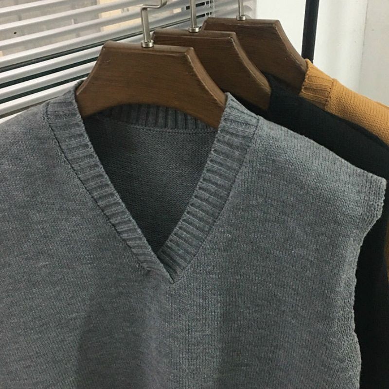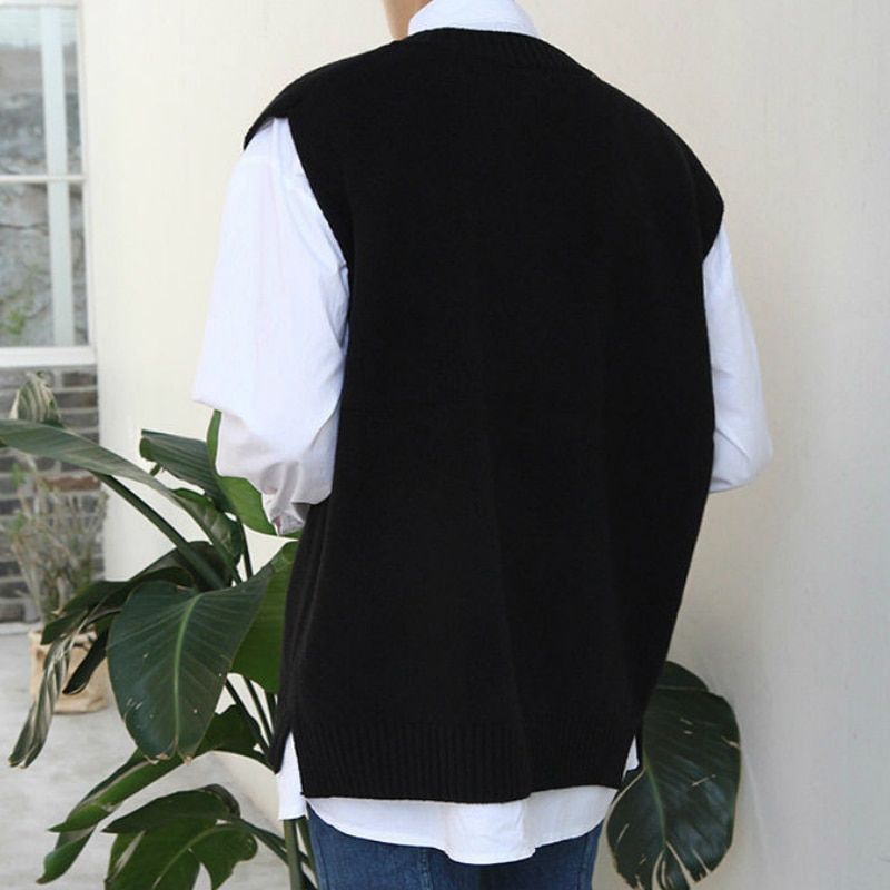 1X Sweater Vest Solid Simple V-neck Sleeveless Sweaters