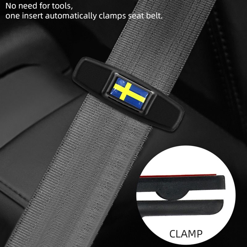 1X Sweden Flag Emblem Car Safety Belt Buckle Car Styling Safety Stopper Belt Clips Adjusting Clip Tension Adjuster for Volvo XC60