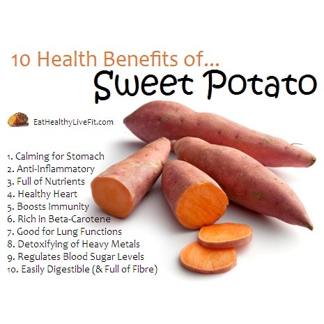 The sweet potato, also known as the Ipomoea batatas, not only contains many nutrients, but it is also packed with medicinal benefits. Scientists have determined that sweet potatoes contain anti-inflammatory, anti-diabetic, and anticancer properties (2). Most sweet potatoes are orange in color, but there are others that come in purple, yellow, white, pink, and red. The following are some of the health benefits that you can accrue from including sweet potatoes in our regular diet.
