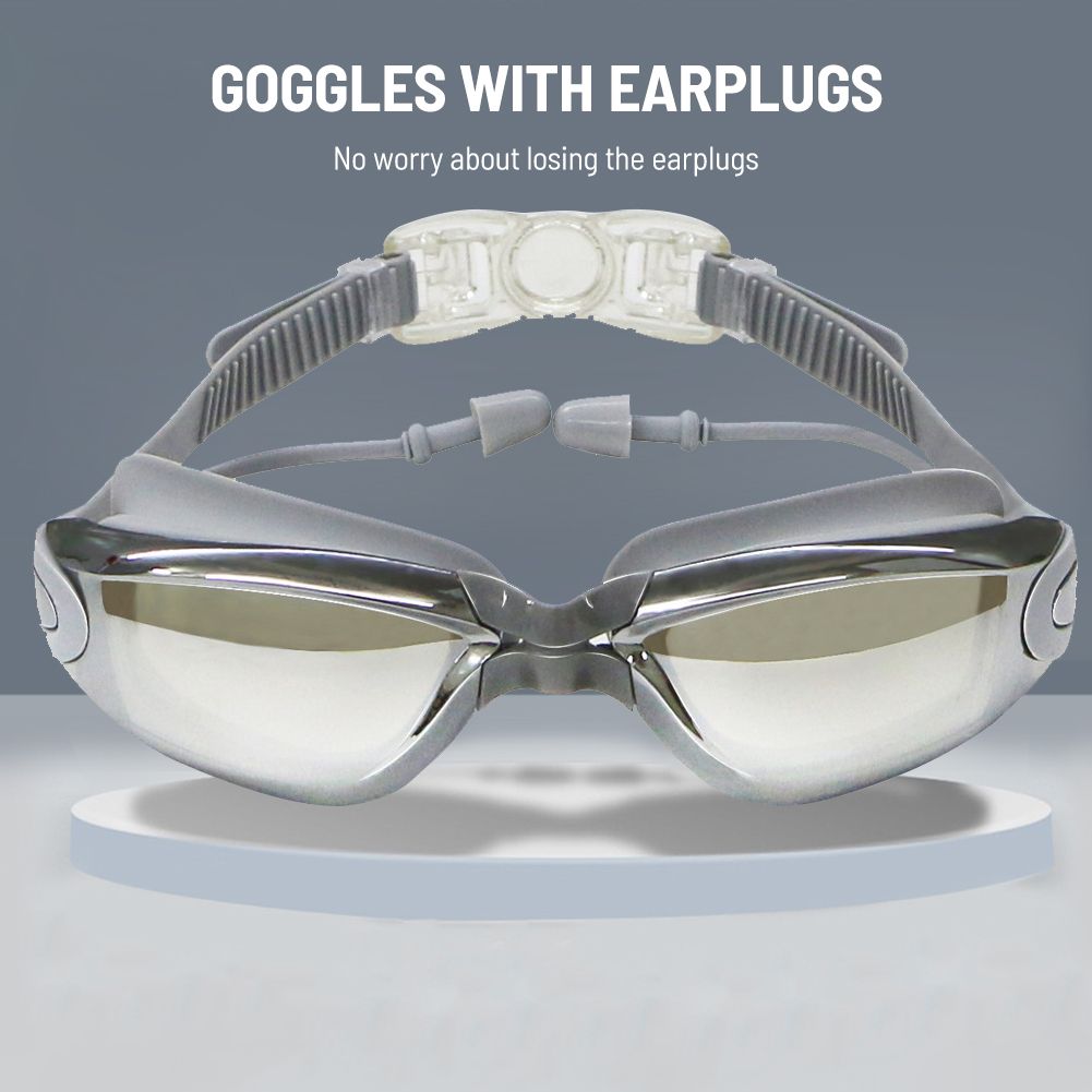 [GOGGLES WITH EARPLUGS] The earplugs are connected with the swimming goggles to prevent water from leaking into your ear canals . And you don't need to worry about losing the earplugs.
