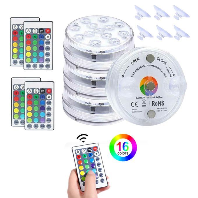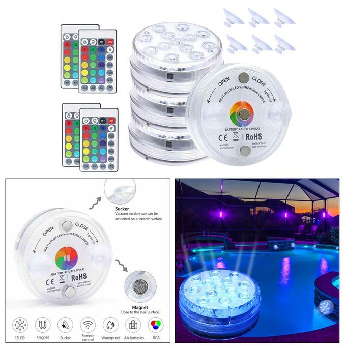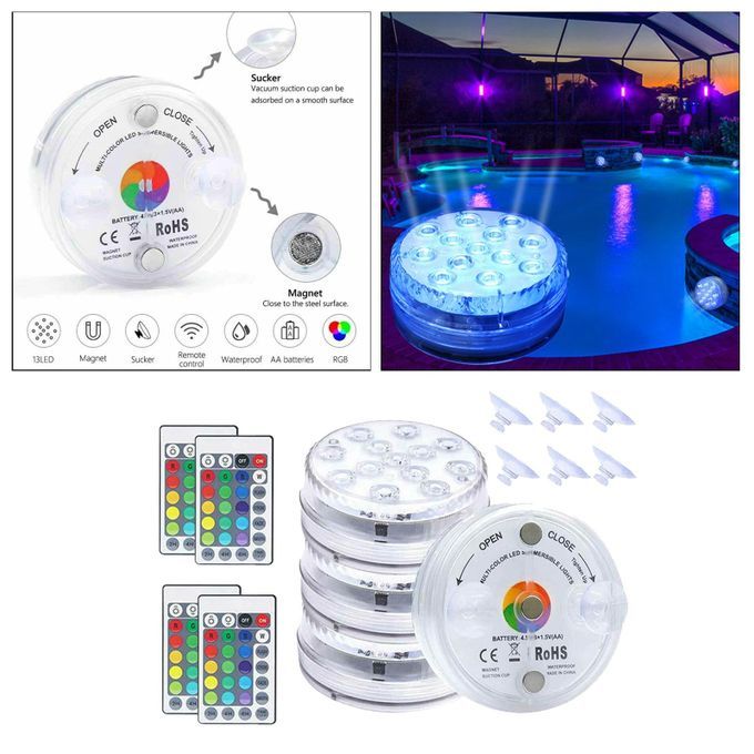 1 Piece Swimming Pool Light + 1 Piece Remote Controller or2 Pieces Swimming Pool Light + 2 Pieces Remote Controllers or4 Pieces Swimming Pool Light + 4 Pieces Remote Controllers