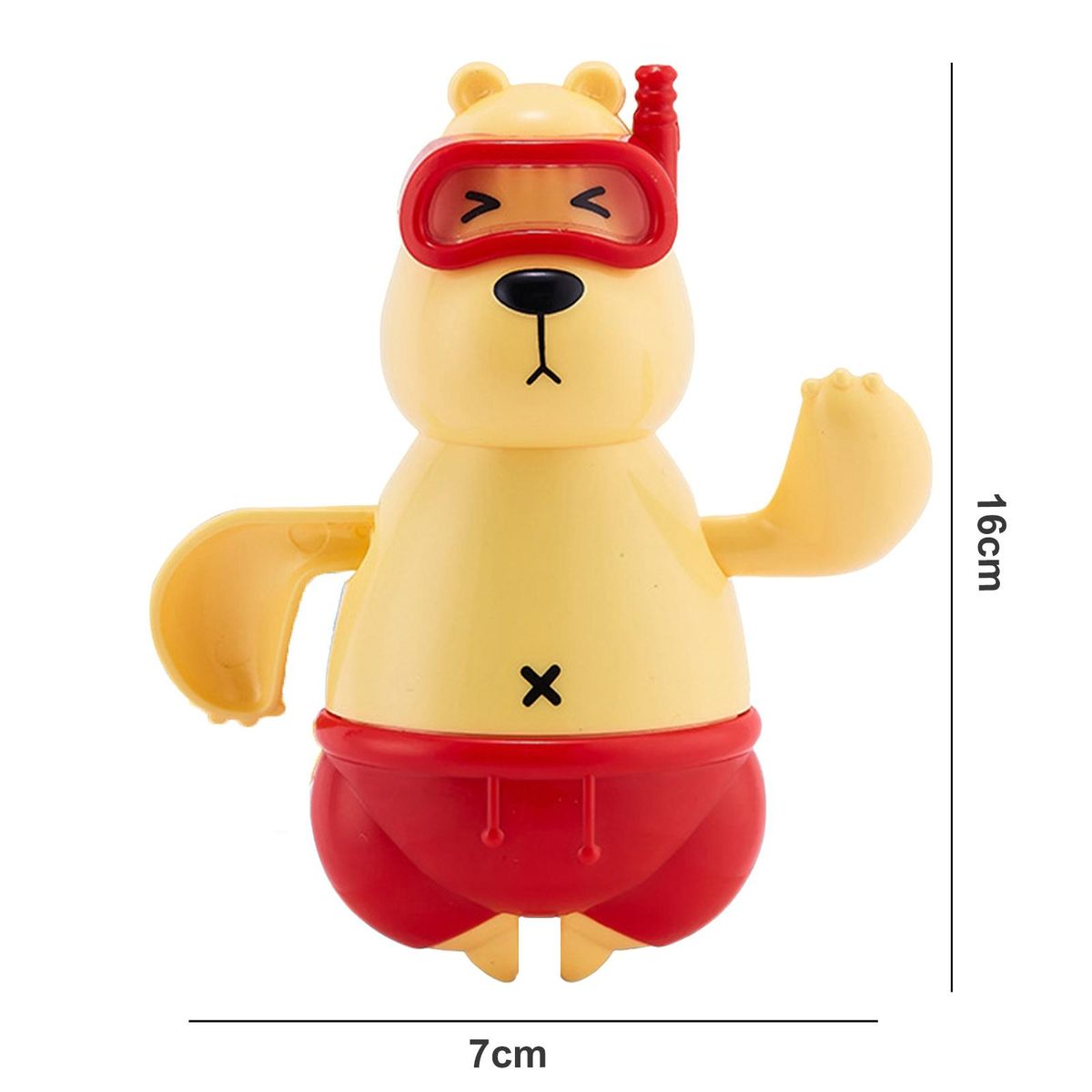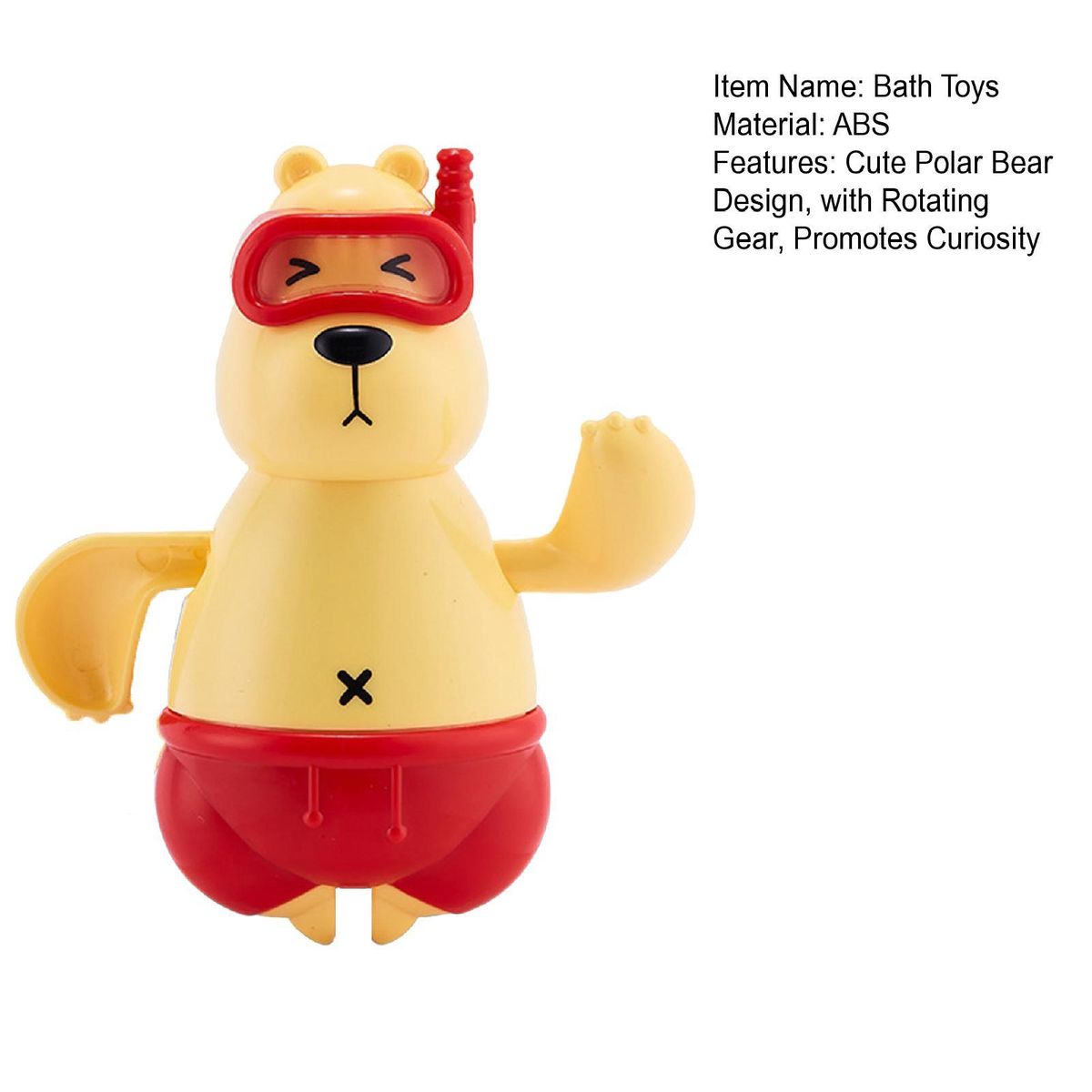 Our adorable polar bear bath toy, designed to make bath time a fun and engaging experience for your little one. this cute toy features a rotating gear on its back that can be turned clockwise, allowing it to swim and splash in the water. watch as your baby's hands quickly slap the water, creating a playful swimming motion that will captivate their curiosity and attention.