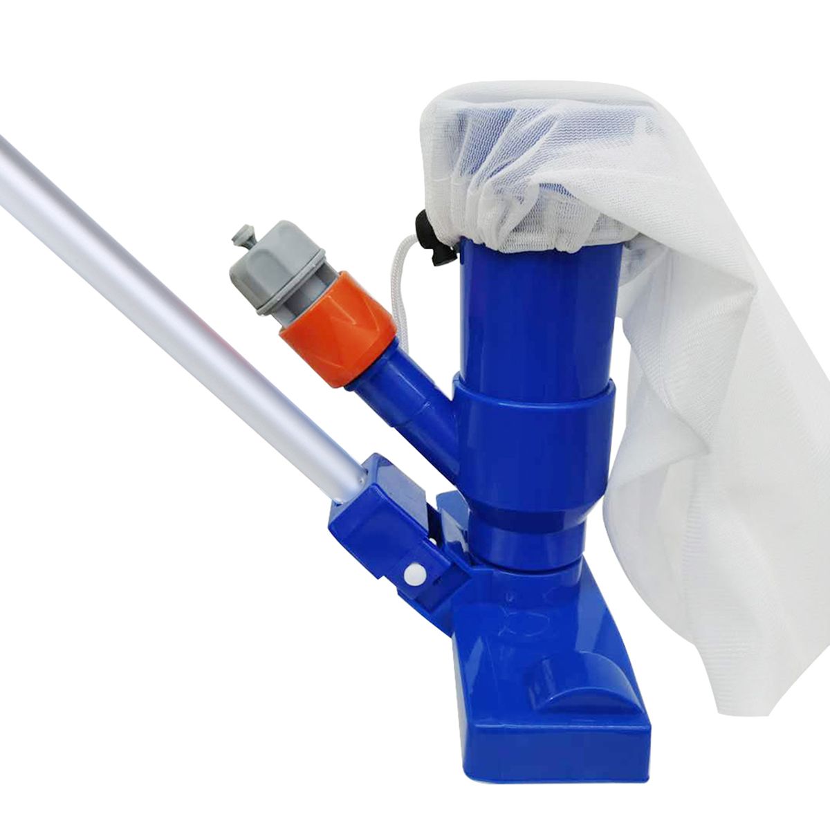 The cleaning head with 3 brushes and mesh bag can easily clean floating leaves of swimming pool. Variably extendable rod, it is easy to handle.