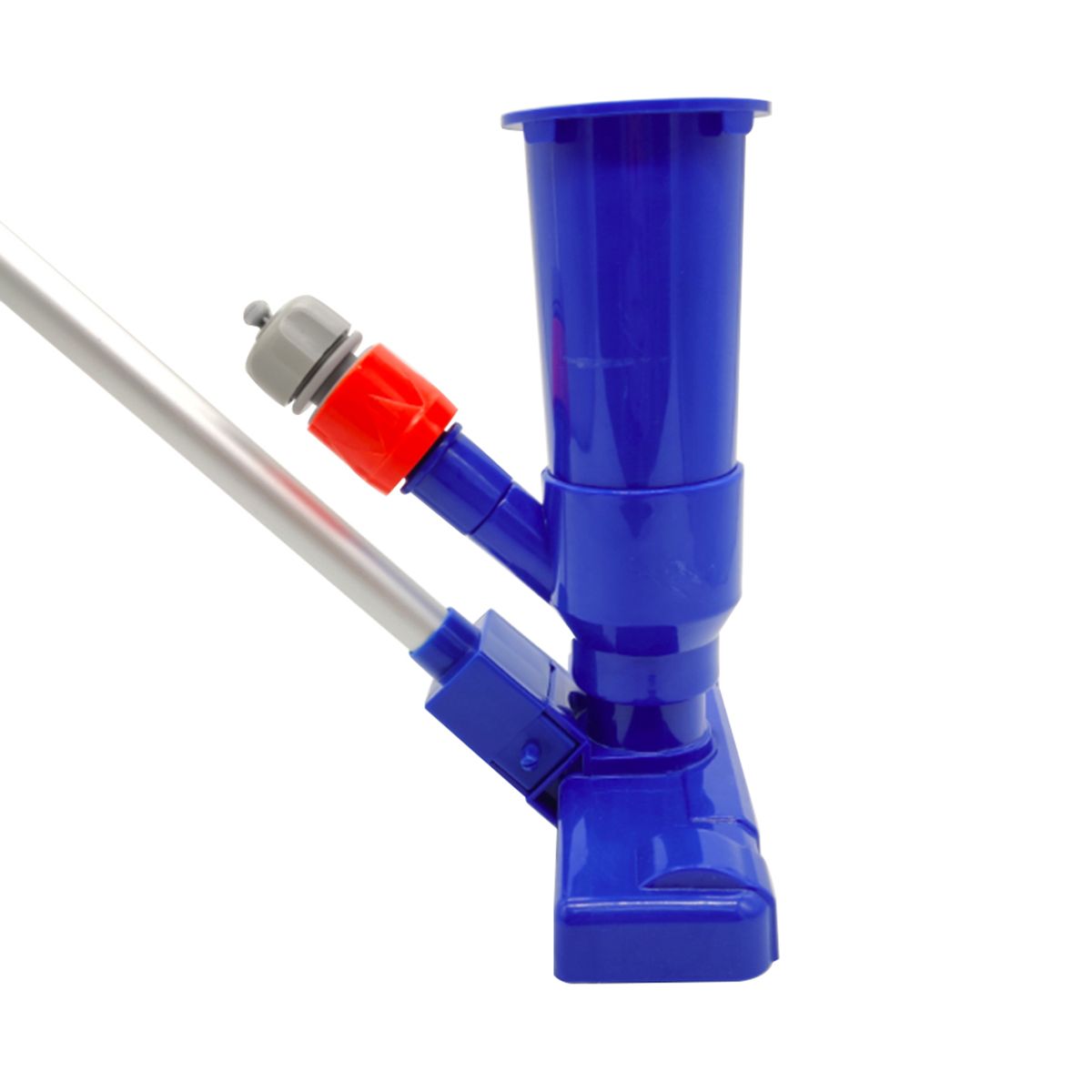 Features:The vacuum cleaner with cleaning head and washable collecting container is connected to a garden hose and has a variably extendable rod.