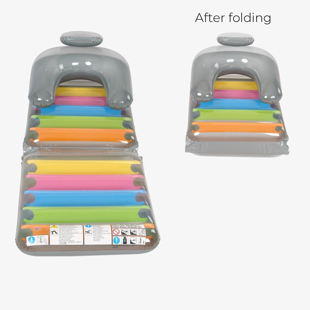 -This single person capacity pool floats ergonomic design provides plenty of and an abundance of comfort. It's easy to inflate head and foot rests also deflate easily for quick and compact storage.