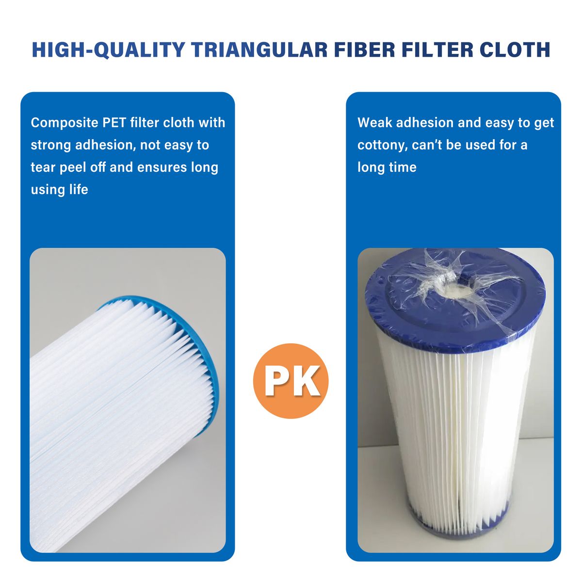 EASY TO CLEAN: The triangular filter cloth with larger spacae between the pleats can hold more dust and it is easier for cleaning. With the help of this filter cartridge, you can keep the water in your swimming pool cleaner and healthier.