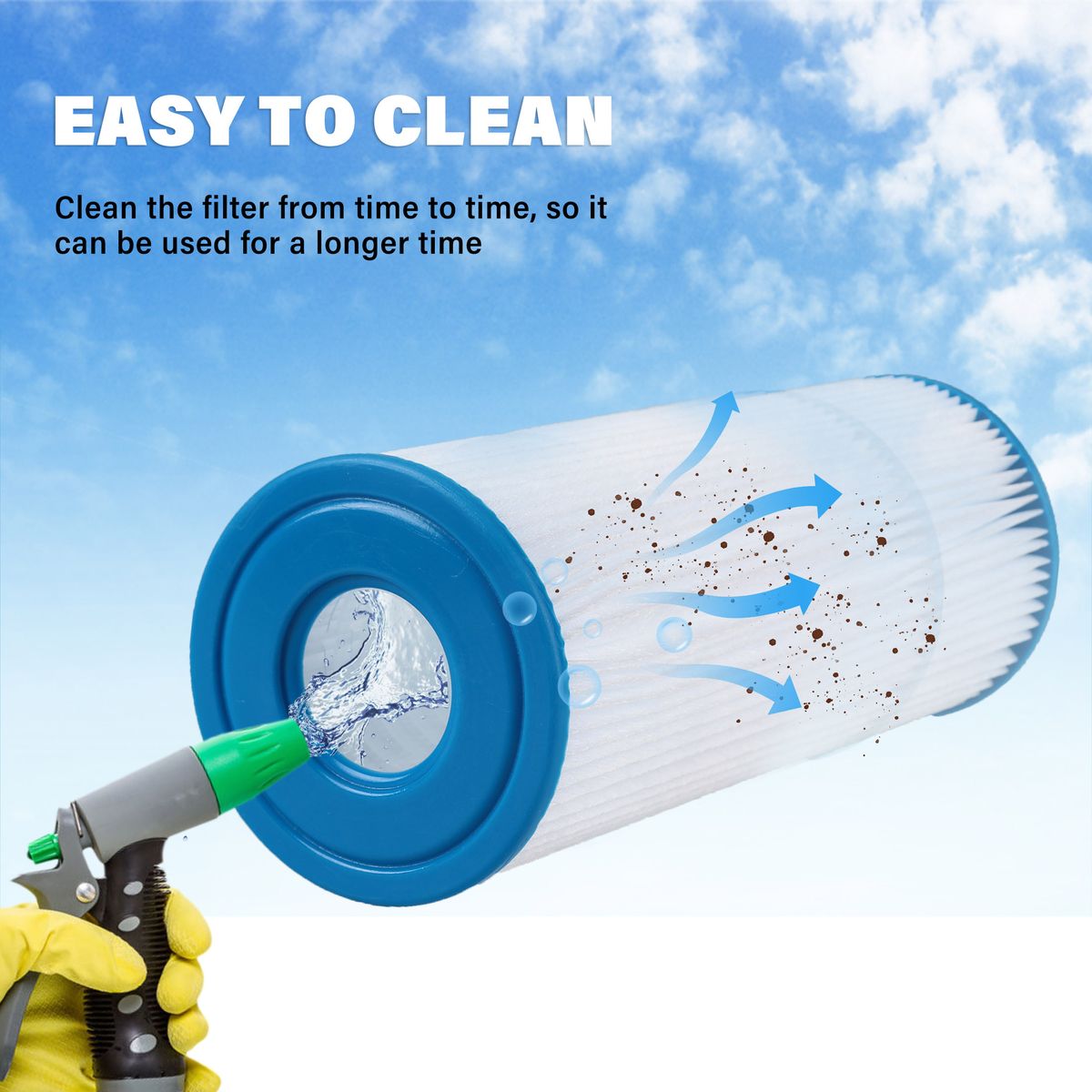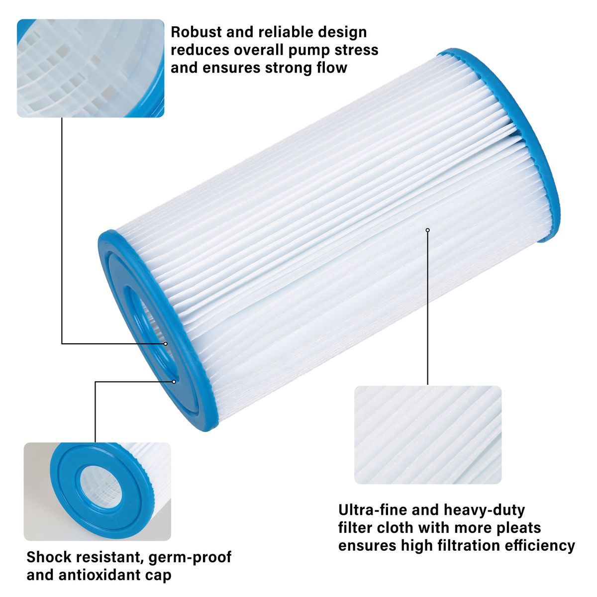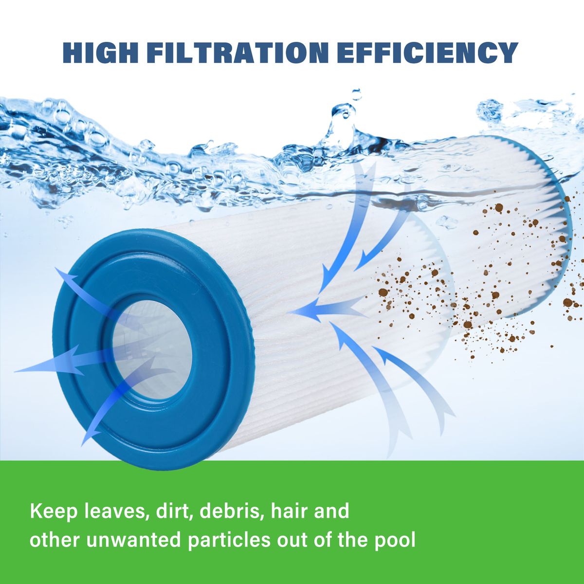 PERFECT FIT: Compatible with pump of type A/C, this filter cartridge can provide high filtration efficiency. You just need to enjoy your time when having this filter cartridge in the swimming pool.
