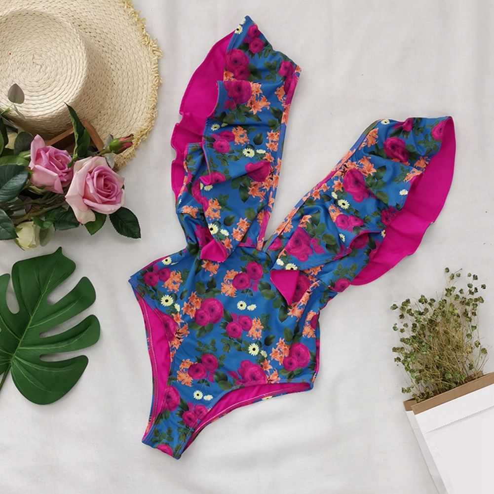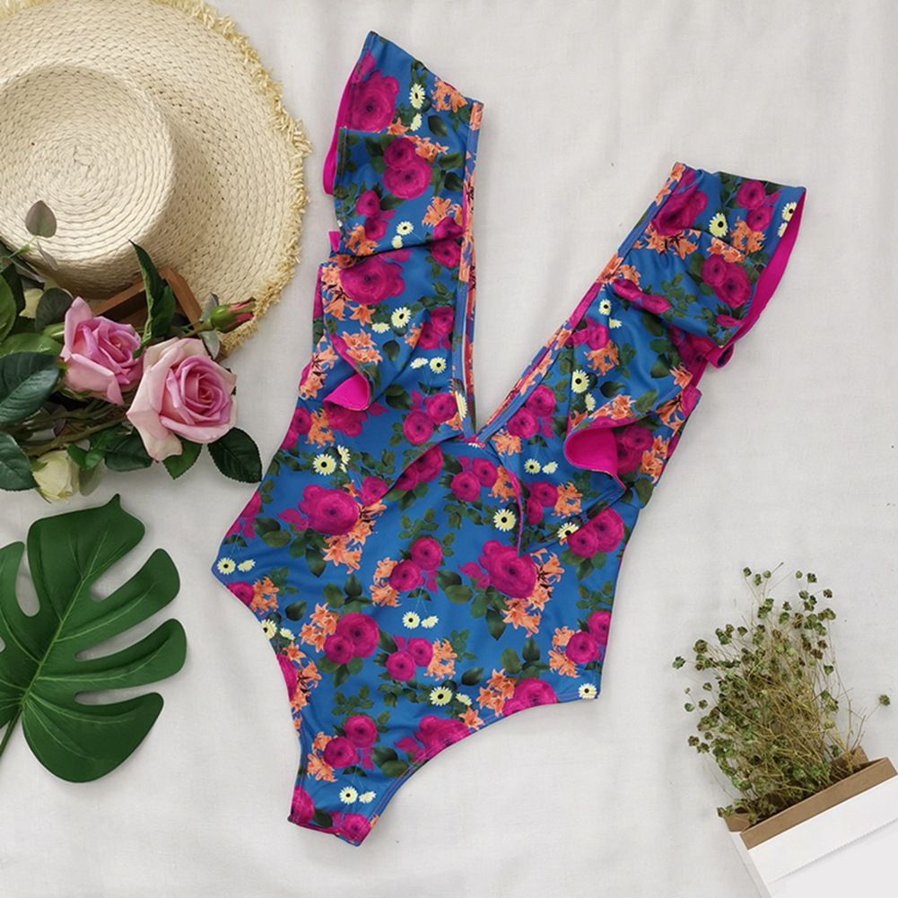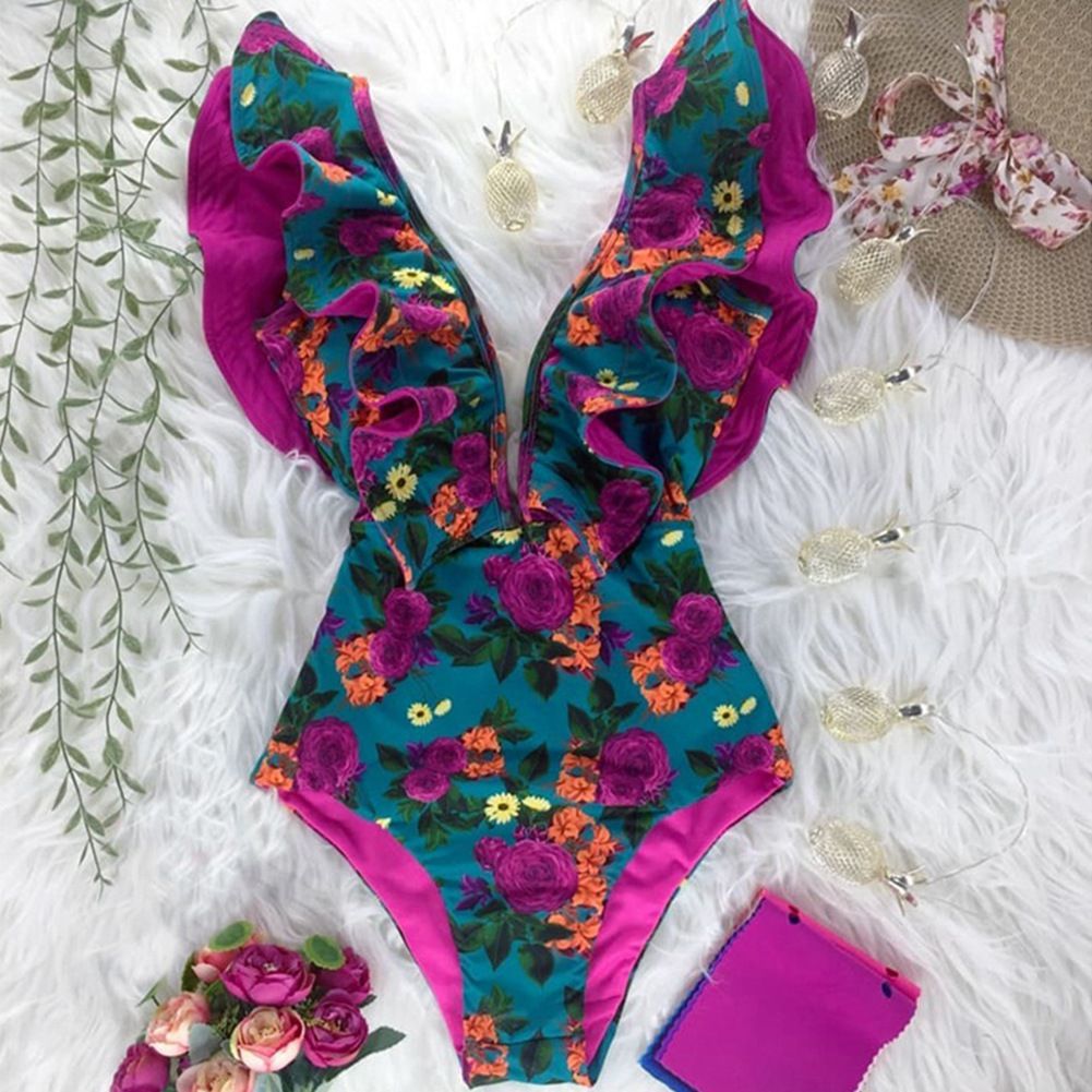 Swimwear Deep V-Neck Ruffle Swimsuit Beach WearStyle: One-piece swimsuit