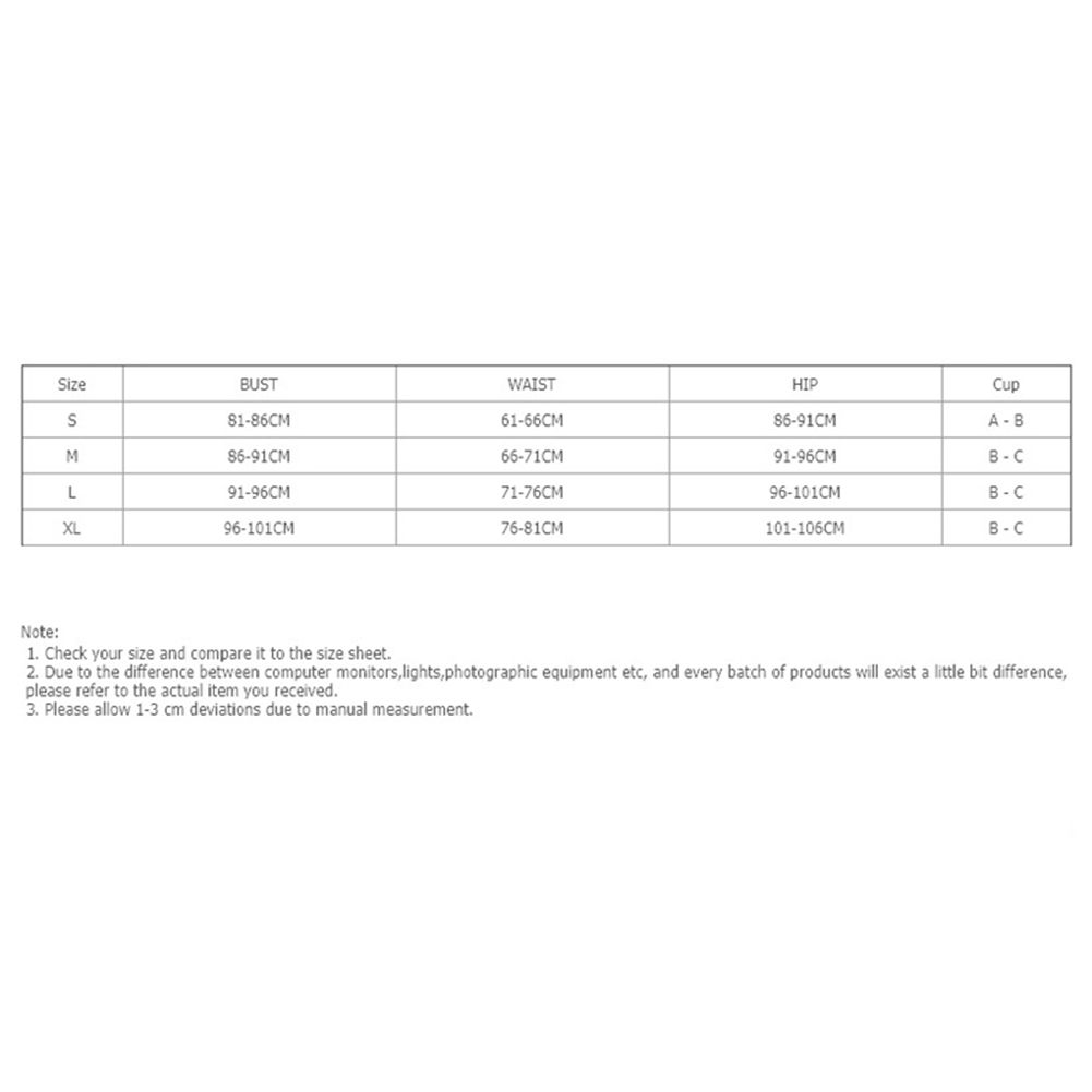 XL(cm/inch): Bust: 96-101/37.80-39.76, Waist: 76-81/29.92-31.89, Hip: 101-106/39.76-41.73, Cup: B-C